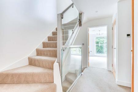 First Floor Landing - Glass balustrade. Storage cupboard.
