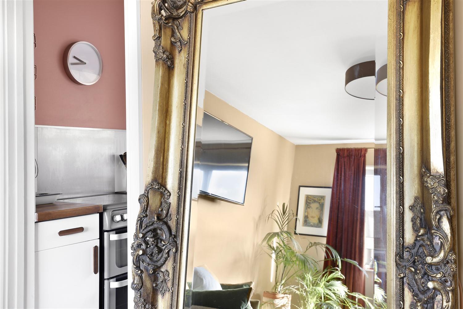 A welcoming hallway leads into a generous reception and dining room, the perfect space for relaxing after a long day or entertaining friends. The separate kitchen is sleek and well-appointed, offering excellent storage and preparation space for those who enjoy cooking. The spacious double bedroom is bathed in natural light, creating a calm and restful retreat, while the bathroom is tastefully finished with a bright and stylish three-piece suite.