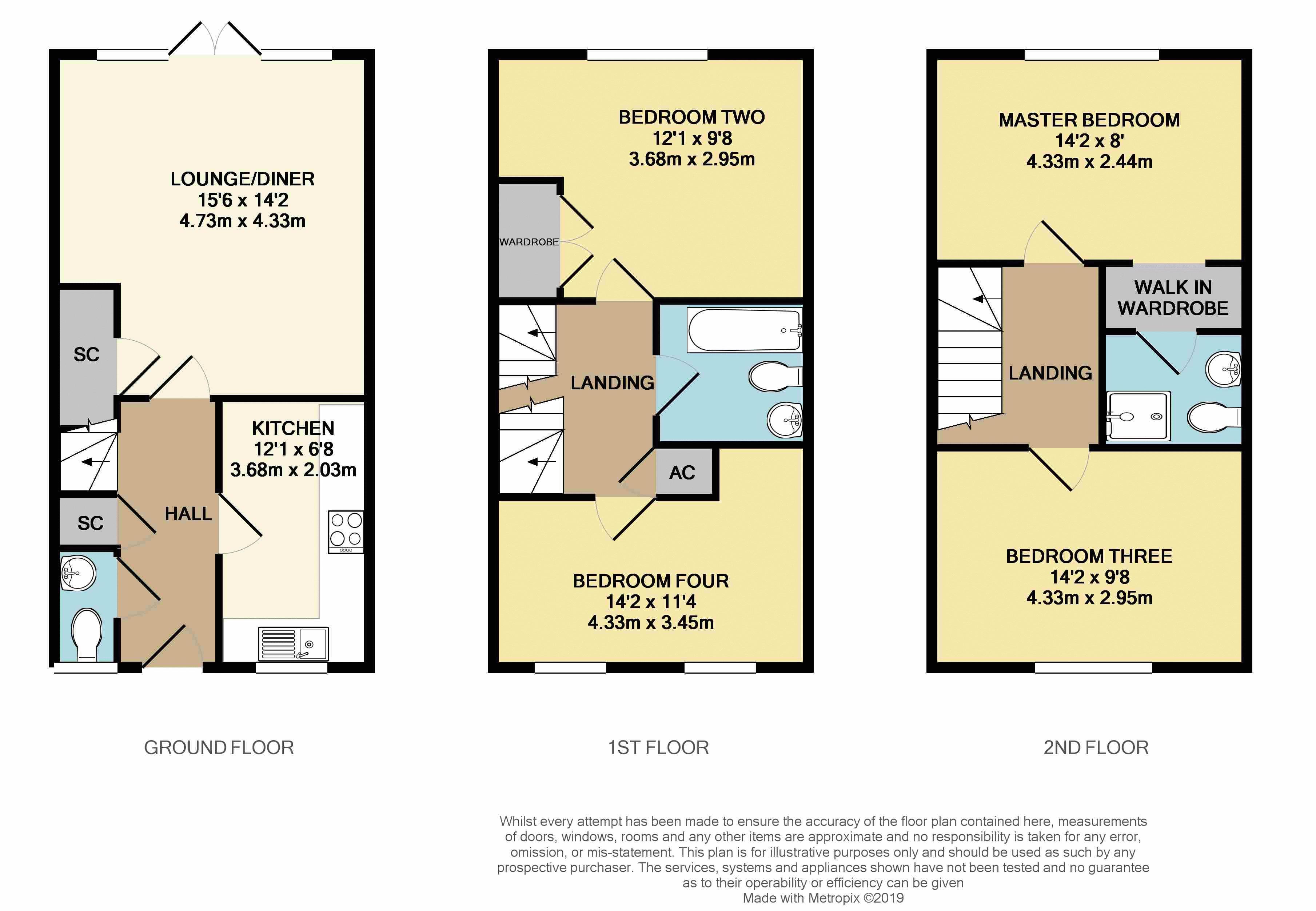 The property is configured over three floors and is comprised of; an entrance hall, cloakroom, refitted kitchen with integrated appliances and a lounge/diner with doors overlooking the rear aspect. To the first floor there is a modern family bathroom suite and two double bedrooms. To the second floor there are another two double bedrooms with the master having the added bonus of having a walk in wardrobe/fitting room and a refitted en-suite shower room. Externally to the rear there is a garden which is mostly laid to lawn with a small patio area. Access to the garage is provided from the rear aspect of the garden. There are 2 allocated parking spaces.