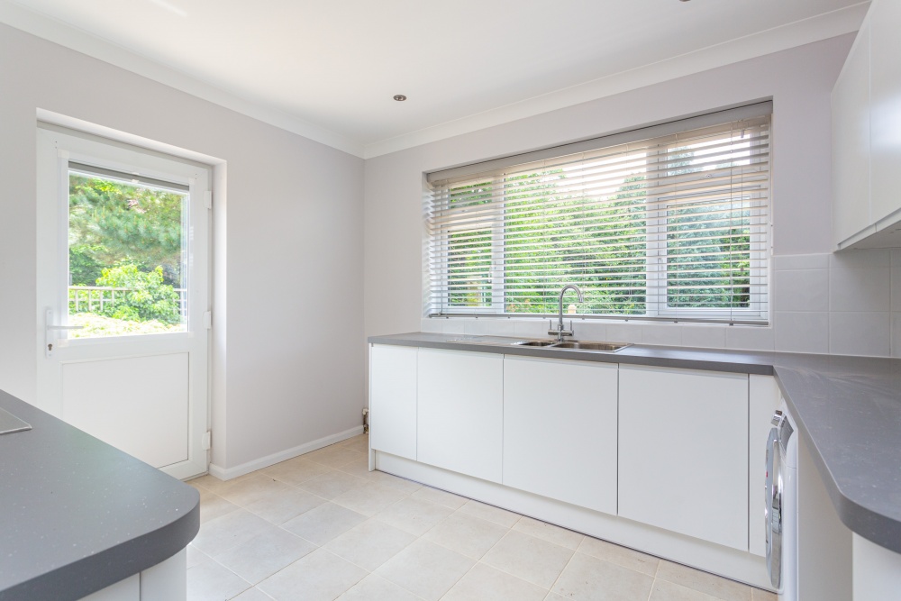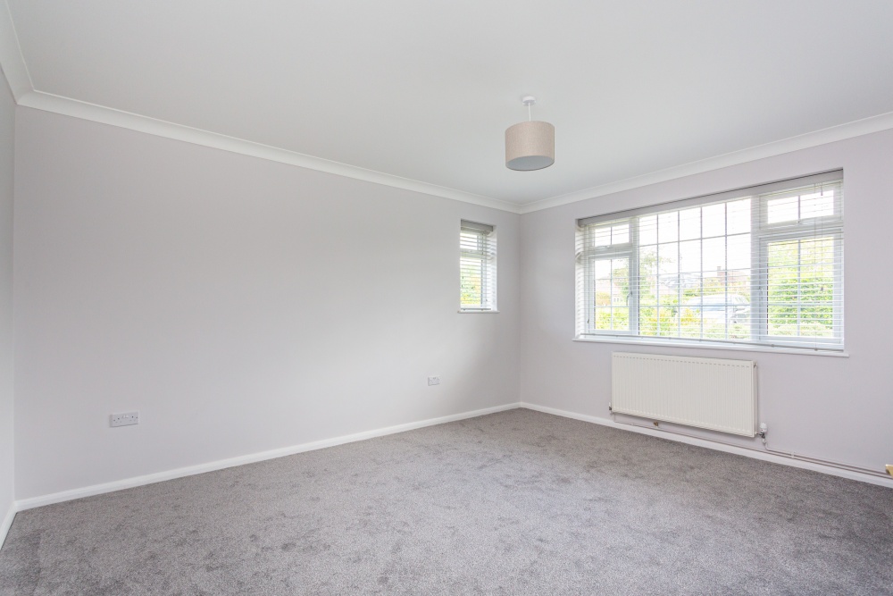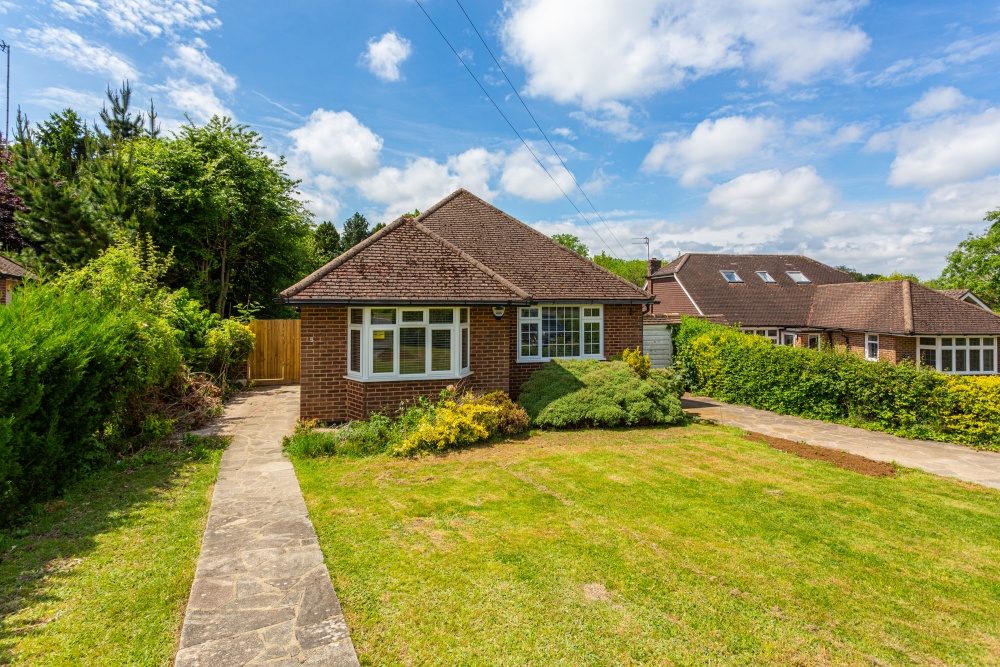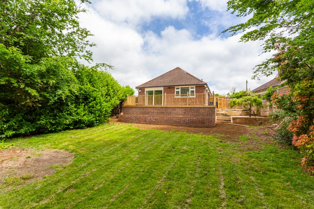 Two double bedroom detached bungalow close to shops, station and within good school catchments. The property has recently been refurbished and is presented in a bright, light contemporary mode. Well fitted kitchen and bathroom, grey and white decor with either grey carpets to living areas and ceramic tiling to kitchen and bathroom. There is off road parking for two plus vehicles and a single garage. All enhanced by front and rear gardens. The rear is fully secluded by mature trees, an attractive decked terrace is ideally placed for the south westerly facing aspect. Available immediately unfurnished. EPC D. Council band E (£2523.60 in 2022)