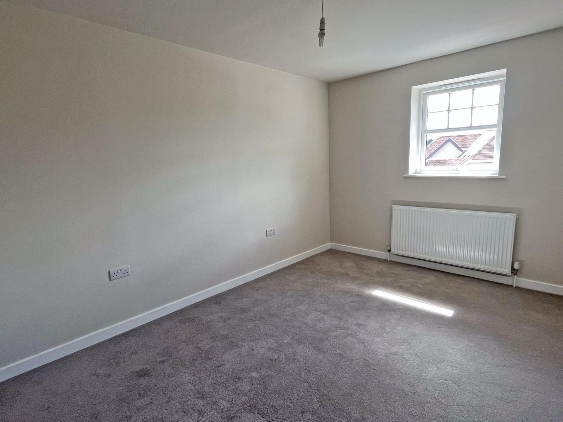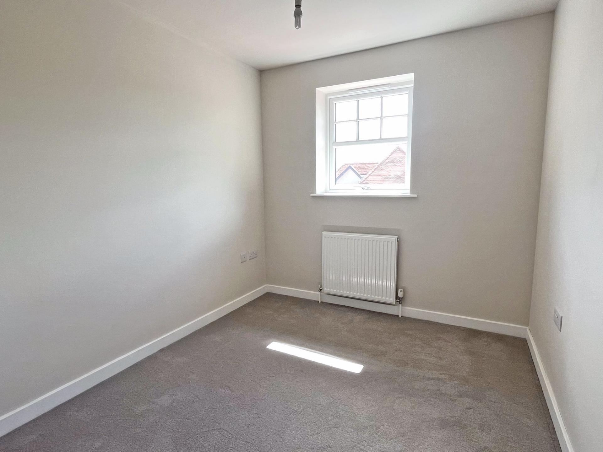 3.72m (12’02) x 3.12m (10’02) Oak door. uPVC double glazed window to front aspect. Radiator. TV point. Grey carpet. LED downlights.