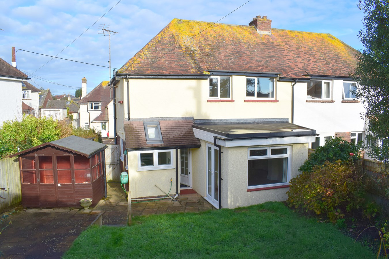 Outside, the property has a well-arranged sizable garden, which is laid to lawn, also providing two large sheds and access to more street parking beyond the rear gate onto Boucher Road which affords a superb shortcut to the town and local bus routes.