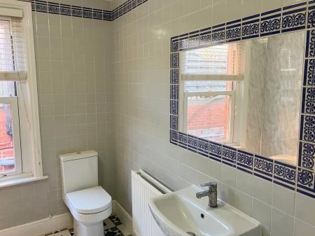 Wash hand basin, WC. uPVC double glazed sash window to the side elevation.