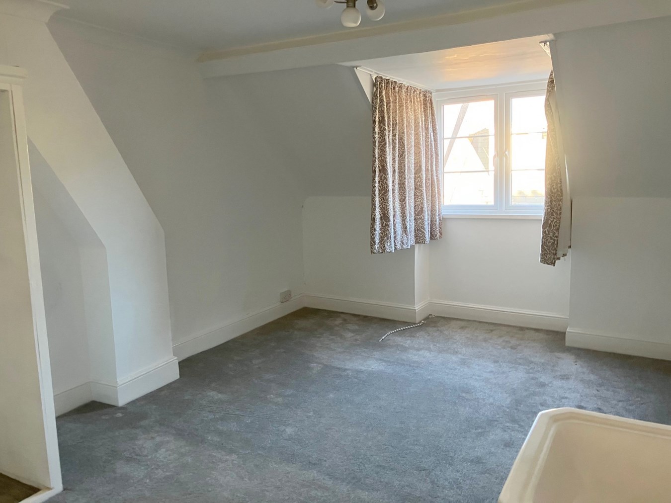 17'9" x 10'10" (5.4m x 3.3m). uPVC double glazed window with side lights. Attractive view over the town and High Street. Wash hand basin. Radiator. Part sloping ceilings. Fitted wardrobe area.