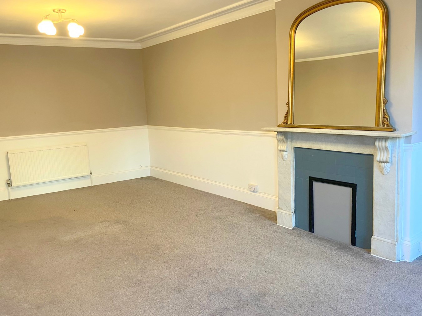 22' x 13'1" (6.7m x 3.99m). A generously proportioned room, benefiting from ornate corniced ceiling. Dado rail. Marble fire surround and mantle with open fireplace. Two radiators. uPVC double glazed sash windows to the front elevation.