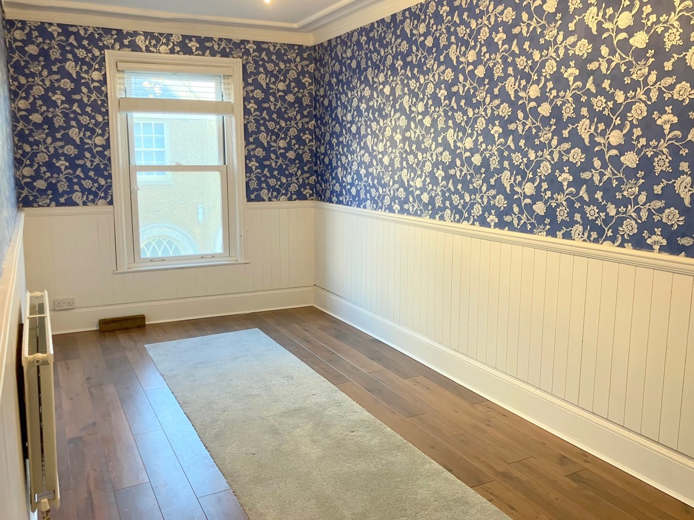 17'9" x 8'2" (5.4m x 2.5m). Radiator. uPVC double glazed sash window to the front elevation. Pine dado rail with pine panelling under. Part corniced ceiling. Exposed floorboards.