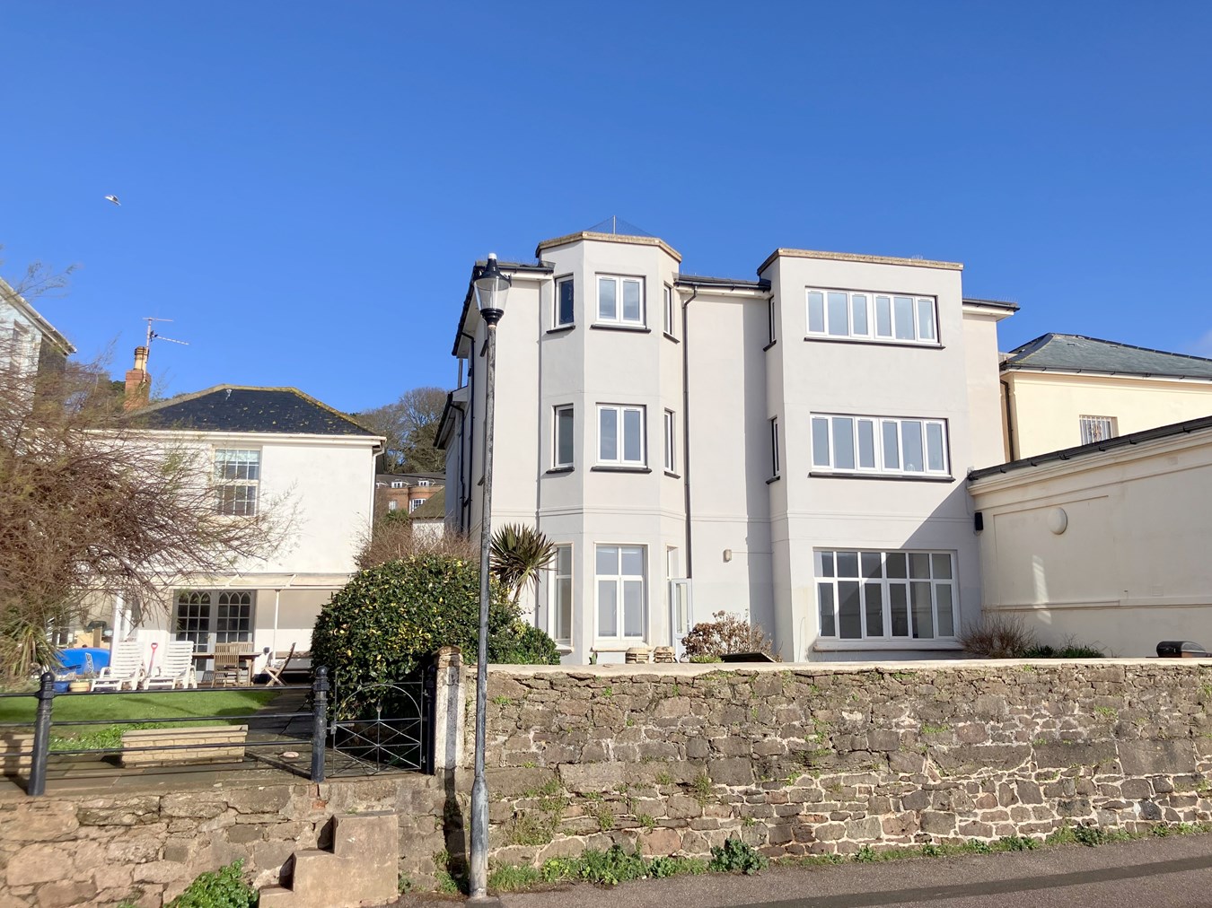 A ground floor apartment in a period building with superb sea views, communal gardens and direct access to the coastal footpath and High Street amenities