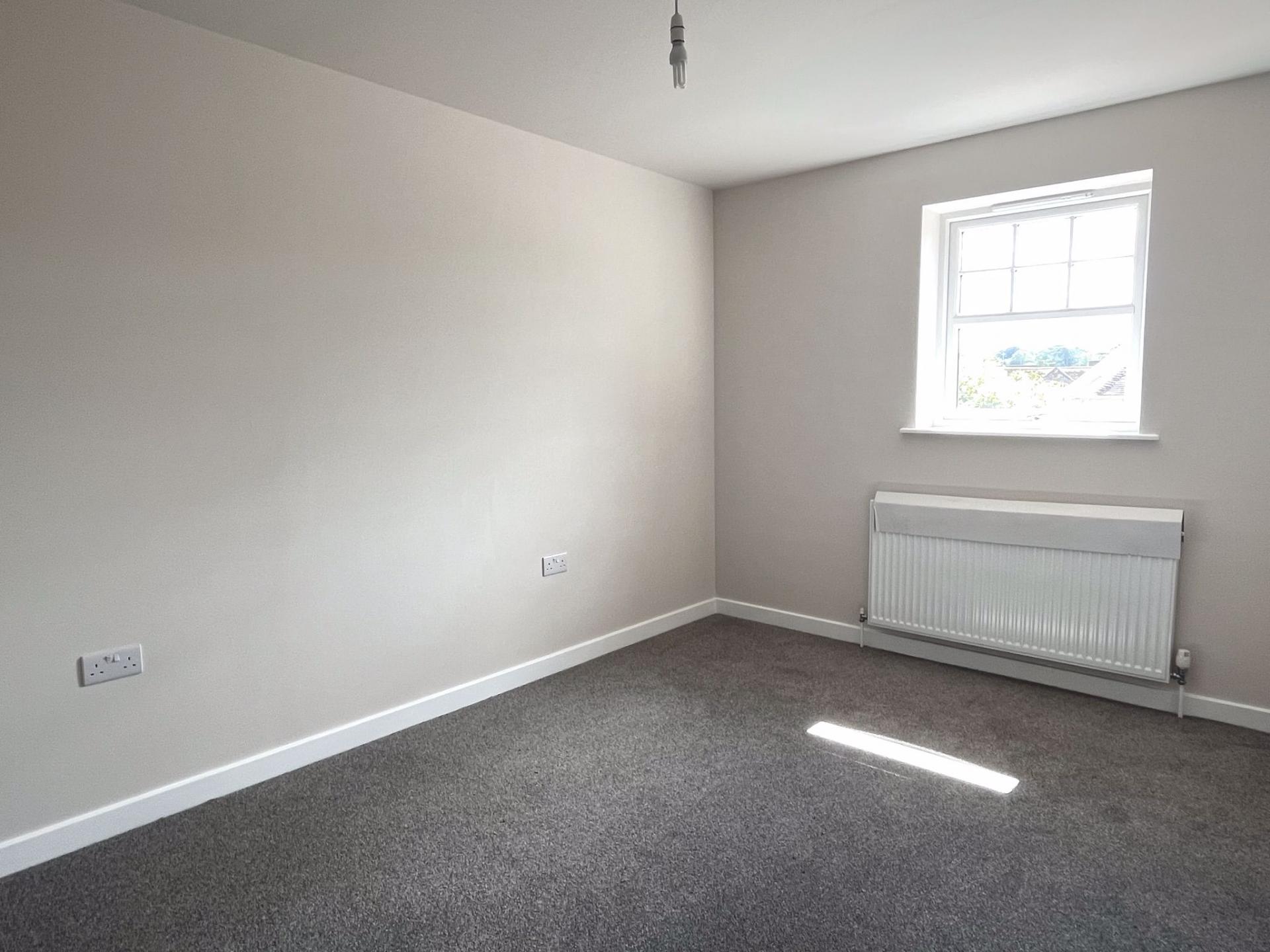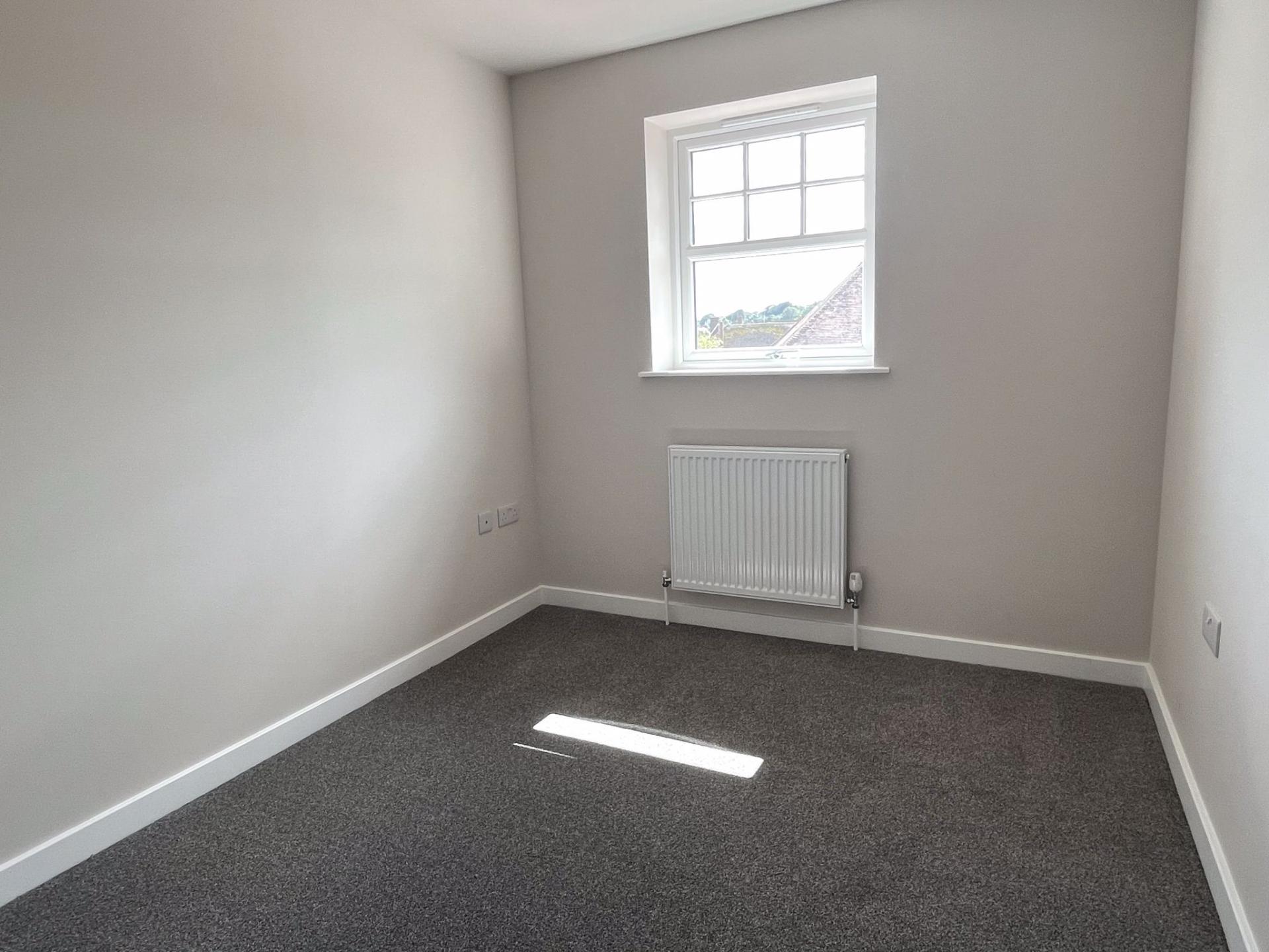 3.72m (12’02) x 3.12m (10’02) Oak door. uPVC double glazed window to front aspect. Radiator. TV point. Grey carpet. LED downlights.