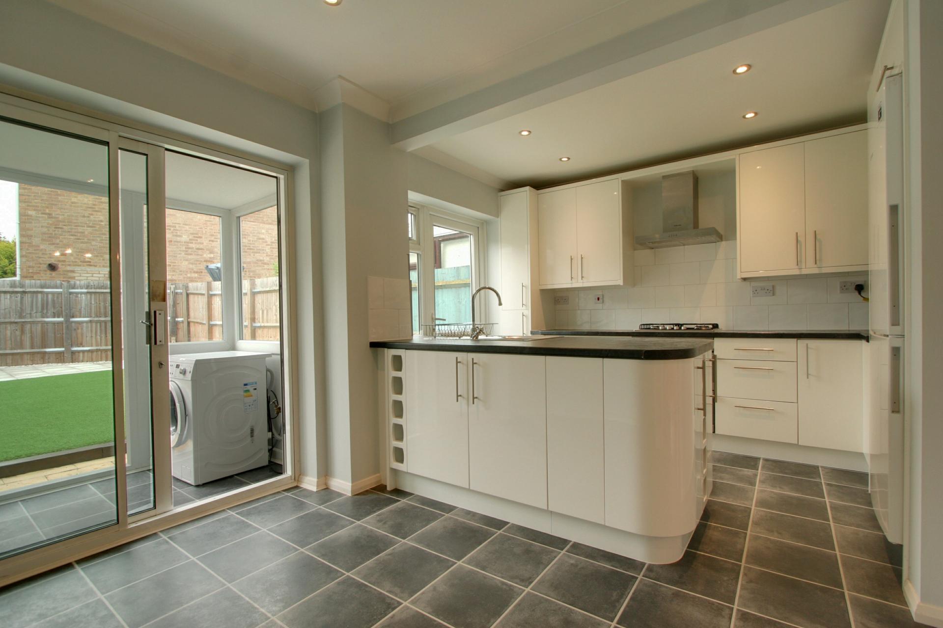 The property would ideally suit a professional couple or family and comprises a bright entrance hall with two storage cupboards, large reception room with under stair cupboard, modern kitchen/dining room featuring white gloss kitchen, fridge freezer, dishwasher, gas hob and washing machine, along with sliding doors to utility area and access to the garden.