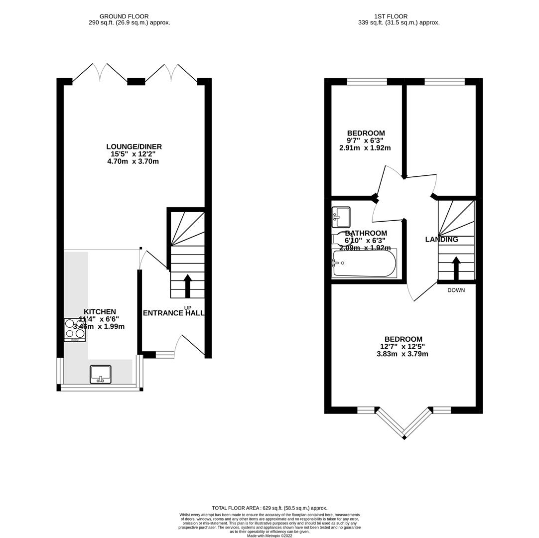 Downstairs the property comprises a entrance hall leading to a good size living room and fitted kitchen. Upstairs is 3 bedrooms and a family bathroom.