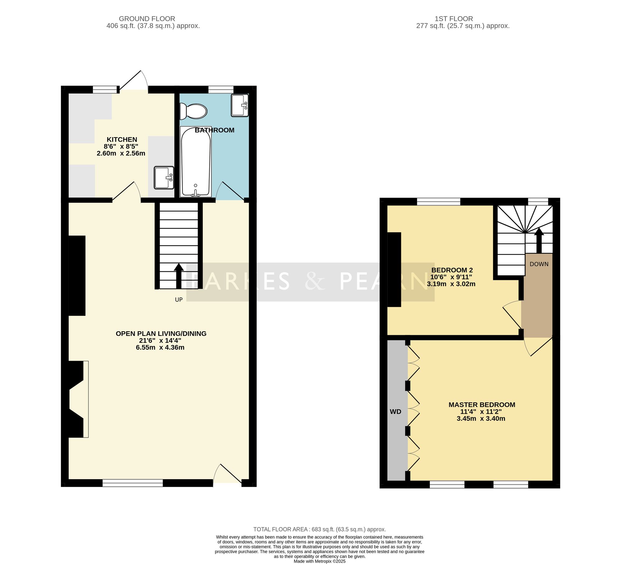 Upstairs, there are two generous bedrooms, with the master benefiting from extensive built-in storage.