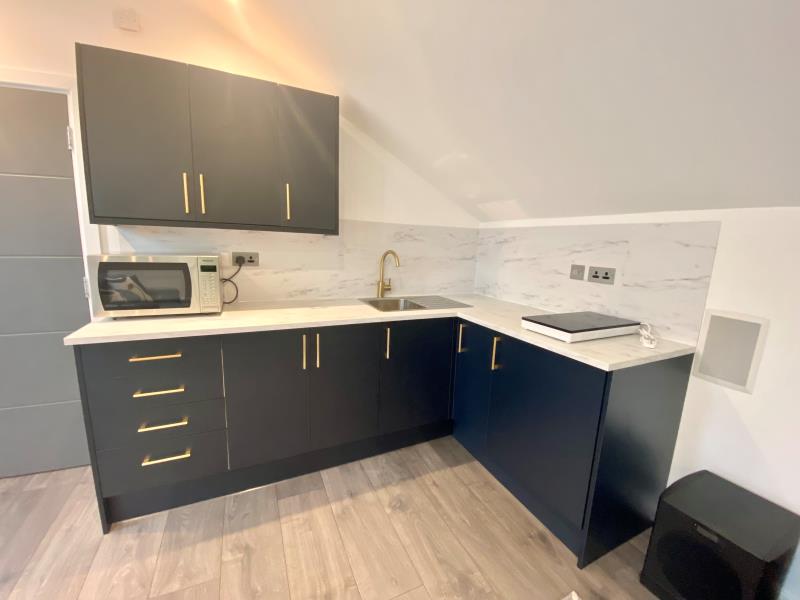 A no expense spared, tastefully modernised annexe attached to a family home situated on a private road just a short walk from Camberley town centre. The property has its own entrance and comprises a large living/studio area with large windows and a vaulted ceiling. The kitchen area is brand new, as are the white goods. Setting this property apart is the truly stunning bathroom. The property has been furnished tastefuly to compliment the modern finish throughout. Outside is a dedicate parking space on the gated driveway.