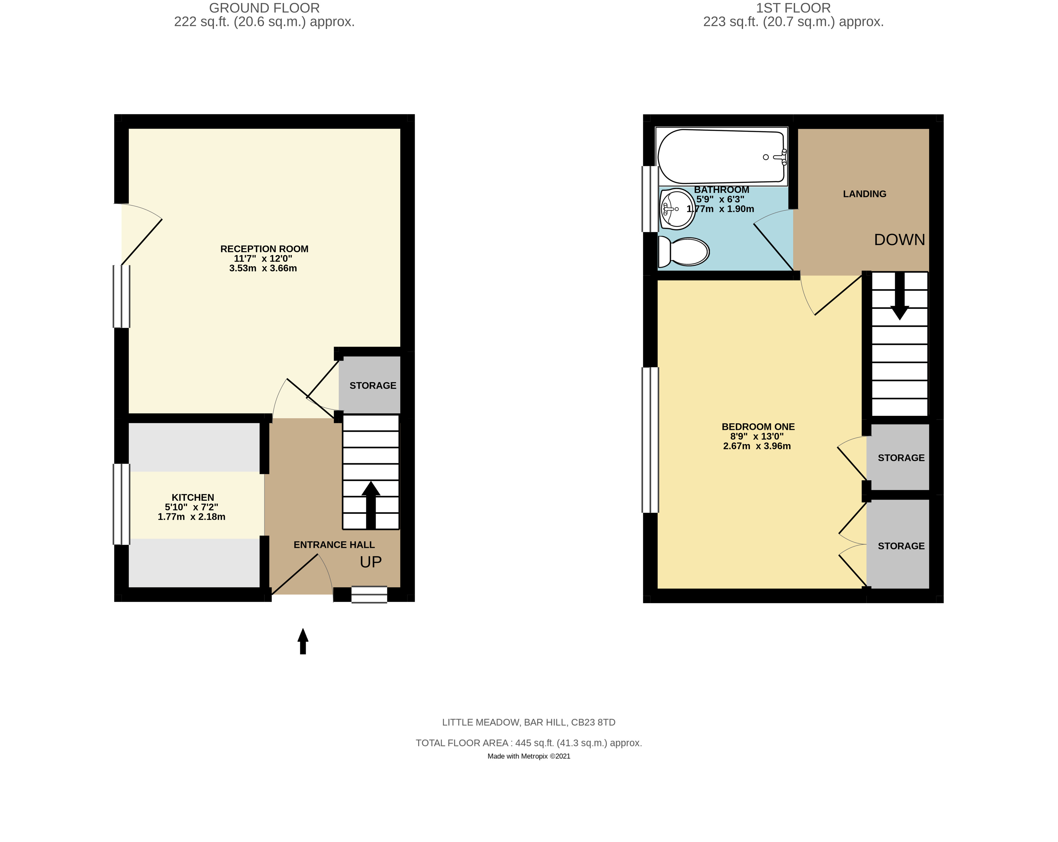 A spacious and well presented one bedroom 'T' style terraced house situated in a popular residential area of Bar Hill. Internal accommodation comprises of; an entrance hallway, kitchen with a range of units, sink, electric hob, oven, undercounter fridge and washing machine plus window overlooking the garden, and a great size reception/dining room benefitting from understairs storage cupboard and access into the garden. Upstairs is a spacious landing ideal for a desk, plus a fantastic size double bedroom with fitted storage and plenty of space for furniture. The bathroom offers shower over bath, WC and basin. Outside is a good size private garden mainly laid to lawn with patio, shed, side gate, and access to allocated parking. EPC rating C. Council tax band B. Available now. Unfurnished.