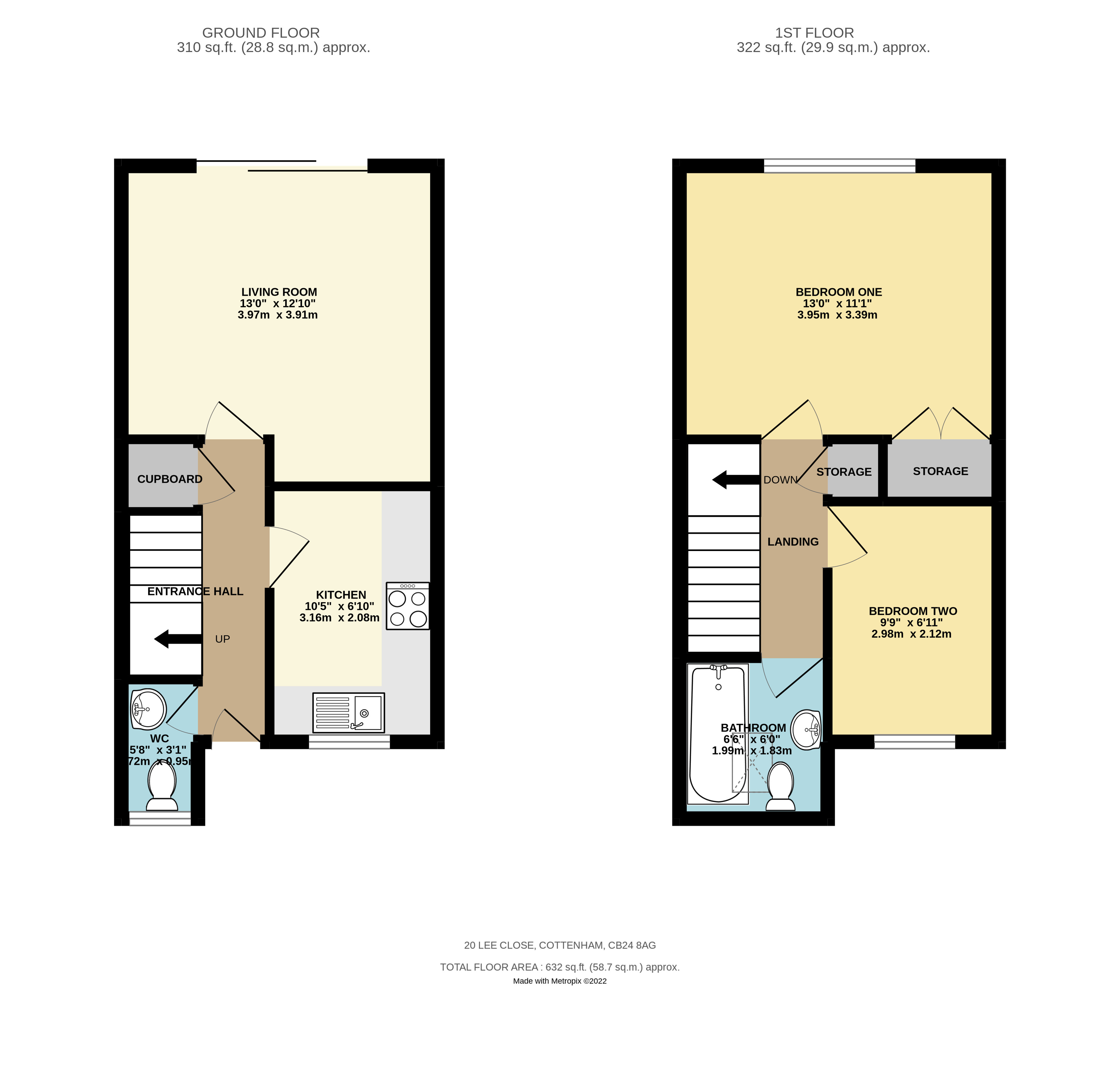 A well-presented two bedroom end of terrace house in the popular north village of Cottenham. The property comprises of an entrance hallway with downstairs WC and under stairs storage cupboard. Kitchen with gas cooker, oven, overhead extractor, washing machine and fridge. Lounge with sliding patio doors to patio/garden. Upstairs comprises of two bedrooms, one double bedroom with double built in wardrobe and second bedroom which is a smaller double. Bathroom consists of shower over bath, sink, toilet, with vinyl flooring.