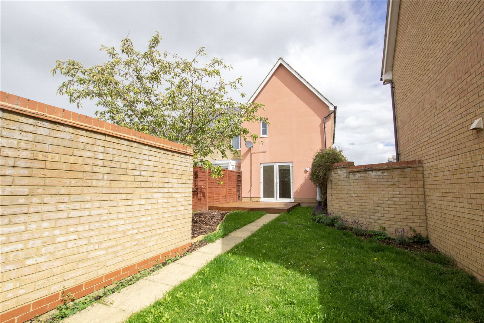 A modern, three bedroom semi-detached house situated in the popular area of Great Cambourne. Accommodation comprises of a well-proportioned entrance hallway, WC with basin, sitting room benefitting from dual aspect windows and double doors onto the garden, plus a modern kitchen/dining room complete with a range of units, worktops, fridge/freezer and oven and hob. Upstairs the property is complete with three bedrooms, two of which have fitted wardrobes, plus a modern family bathroom and further en-suite shower room. Outside there is a pleasant south-facing rear garden with patio and lawn, plus rear access leading to a parking area and the single garage. Offered to market unfurnished, the property is available early April 2025. EPC rating C. Council tax band C. Sorry Pets are not considered.