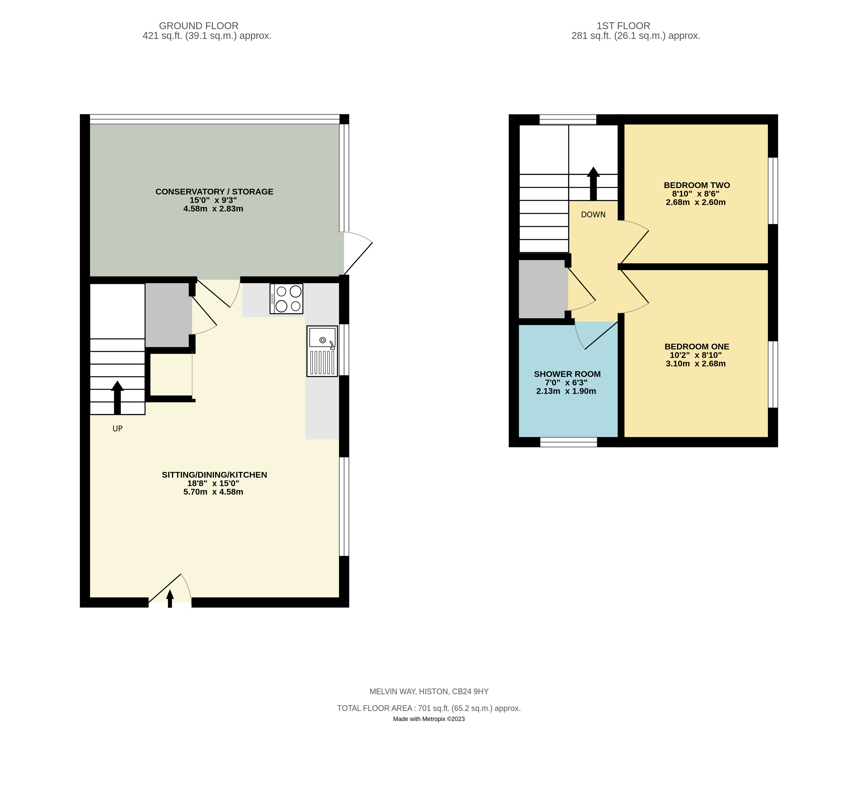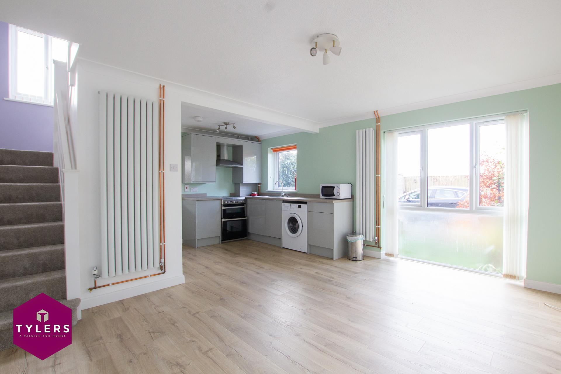 An immaculately presented and fully refurbished two bedroom house situated in this quiet cul-de-sac in Histon. Internal accommodation comprises of an open-plan sitting/dining/kitchen which benefits from a range of modern units and appliances, large understairs cupboard, modern fixtures and fittings, and plenty of space for furniture. There is also a generously sized conservatory/store area to the side (no heating) which also offers access to the garden. Upstairs the property is complete with two good size bedrooms, plus a modern shower room complete with double shower tray, WC, basin, heated towel rail and storage. Outside the property is tucked away and benefits from a small garden with lawn and mature hedges, plus an allocated parking space. Available now. Unfurnished. Council tax band B. EPC rating C.