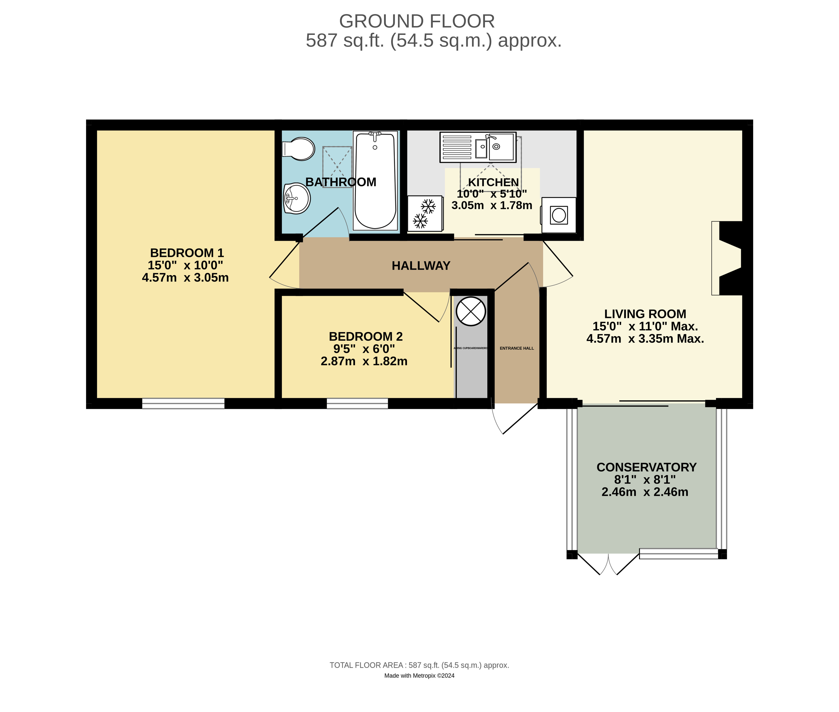 There is an Entrance Hall with coat hooks and door to:- Inner Hallway with electric radiator. Loft access. Smoke detector. Doors to:- Living Room which has a wood burning stove. Electric radiator and sliding door to:- Conservatory with windows to three sides and access out to the garden. There is a modern Kitchen comprising of a one and a half bowl stainless steel sink unit. Washing machine. Tumble dryer. Fridge/Freezer. Electric cooker. A range of top and base units with roll top work surfaces over. Tiled flooring. Skylight. The Bathroom has recently been refitted and comprises of a close coupled W.C. Pedestal wash hand basin. Panelled bath with shower over. Electric heated towel rail. Wall mounted fan heater. Velux window. There are two bedrooms, one large double and single with built in wardrobes and airing cupboard.