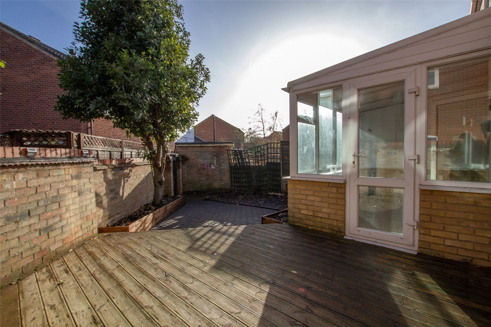 A recently redecorated three bedroom home with conservatory and courtyard garden in a tucked away position at the end of Augustus Close. The entrance porch leads to an inner hallway, kitchen with appliances, living room with laminate floor. The conservatory provides that vital extra space. Modern updated family bathroom. A garden to the rear makes an attractive outdoor entertaining area with lawn and decking. Available now. Unfurnished. EPC Rating: D. Council Tax Band: C (£1,889.92 per annum 2023/24)