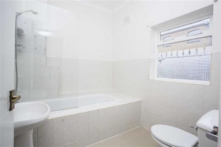 Bathroom - 7'10 x 7'5 (2.39m x 2.26m) - Bath with mixer tap and overhead shower attachment, wash basin with mixer tap, tiles splash area, window to rear aspect