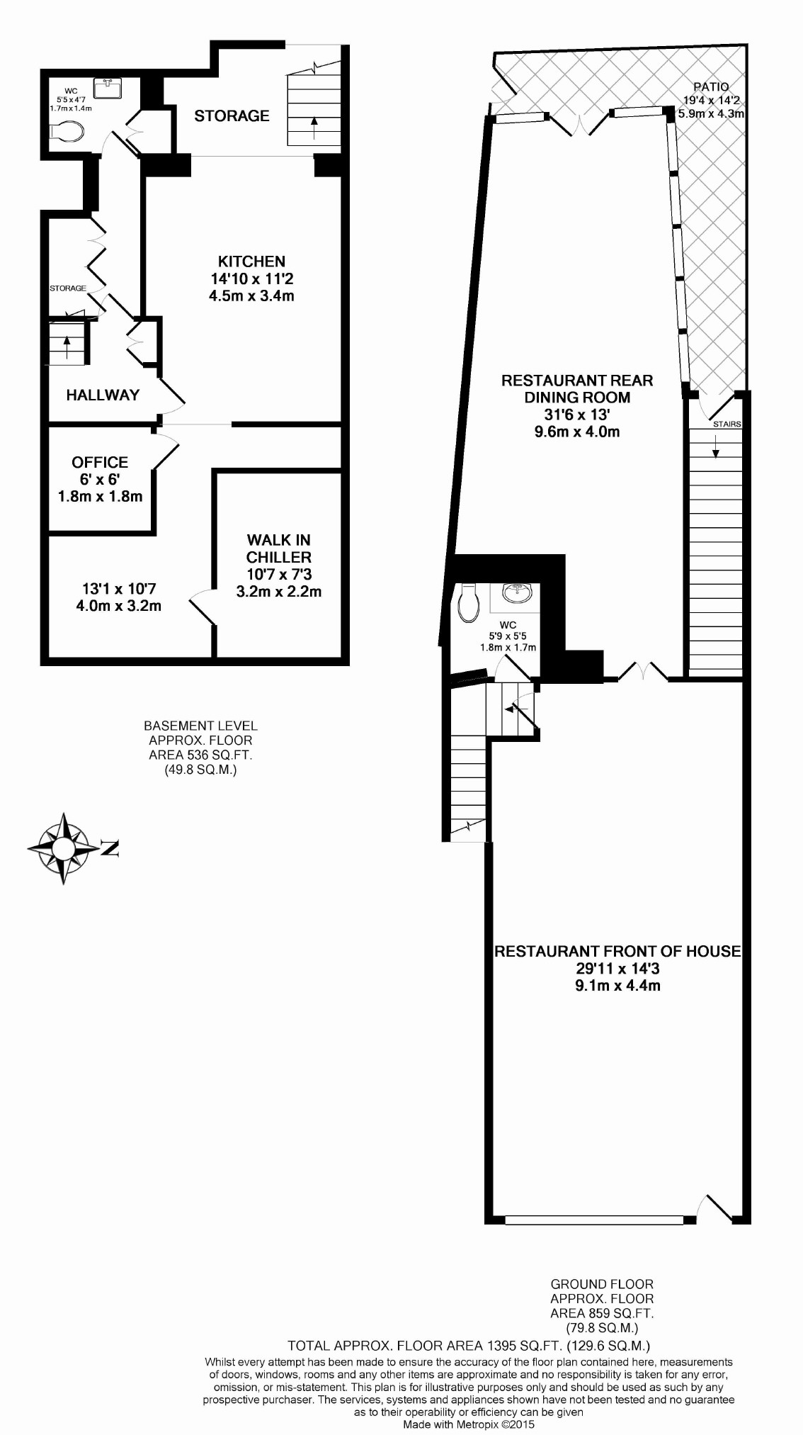 The Commercial unit is approximately 1,390 Sq Ft. The basement houses a large kitchen, cold room and storage space. The ground floor contains the seating area and preparation area. The residential upper units are spread over 3 floors, comprised of 3 x One Beds.