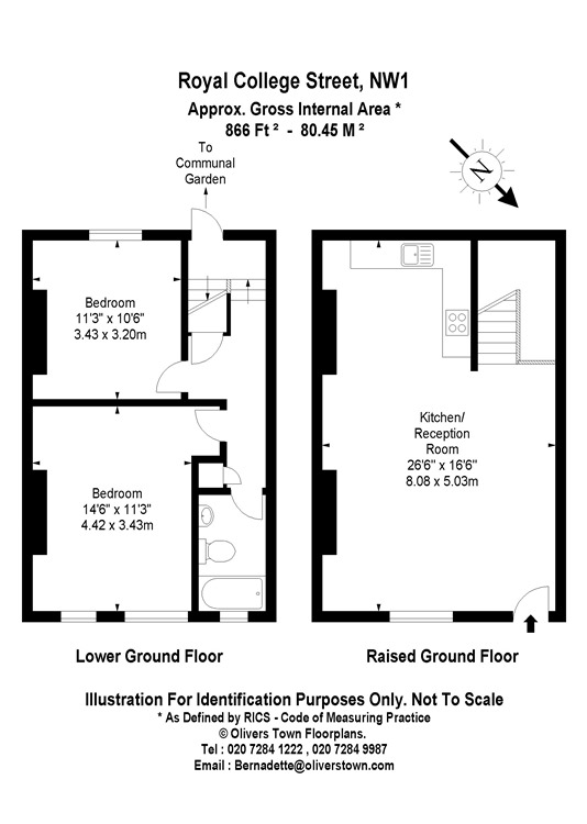 Spacious and light two double bedroom Maisonette with outside space positioned in the heart of Camden Town. Arranged over two floors and comprising light and bright double reception and new open plan kitchen reception, direct access to a share of a terraced and planted garden, brand new bathroom with under floor heating and two double bedrooms. Neutral decoration and wood flooring throughout. Located only moments to Camden Road Over ground, Camden Town Northern-Line Underground and St Pancras International Station. Within the catchment area for Camden School for Girls. Council Tax & EPC D. UNFURNISHED