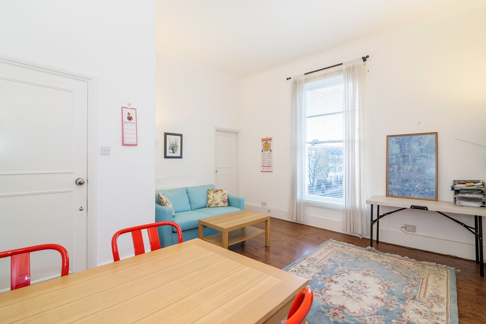 Bright and airy two bedroom period conversion flat with a shared garden. Set on the first floor, the accomodation comprises a good size reception/dining room, seperate kitchen, two double bedrooms and a bathroom. The flat has been neutrally decorated throughout and benefits from high ceilings and solid wood floors throughout. Ideally located for all amenities of Kentish Town, Camden and Tufnell Park along with the specialized shops on Brecknock Road, the nearest underground and mainline stations being in Kentish Town.