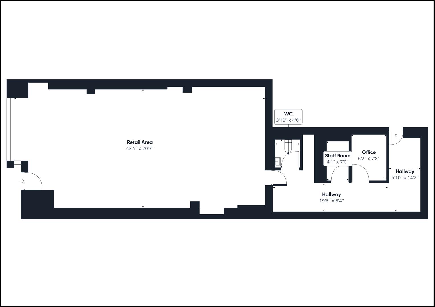 The internal frontage to High St is just over 20 Ft with a depth of approx 42 ft currently used for retailing. To the rear are sections which in the past were part of the retail area but now used for Office, W.C. Changing Rooms etc.