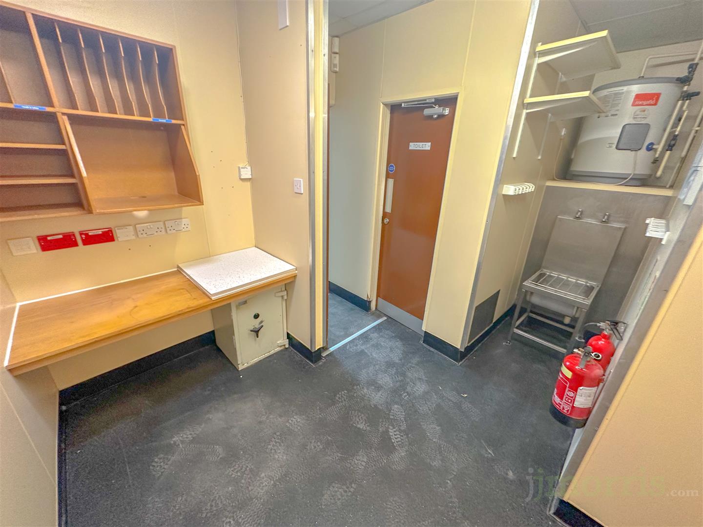 Office/Preparation Area - Stainless steel sink unit with hot water cylinder, workstation, rear access/fire escape. Door to:-