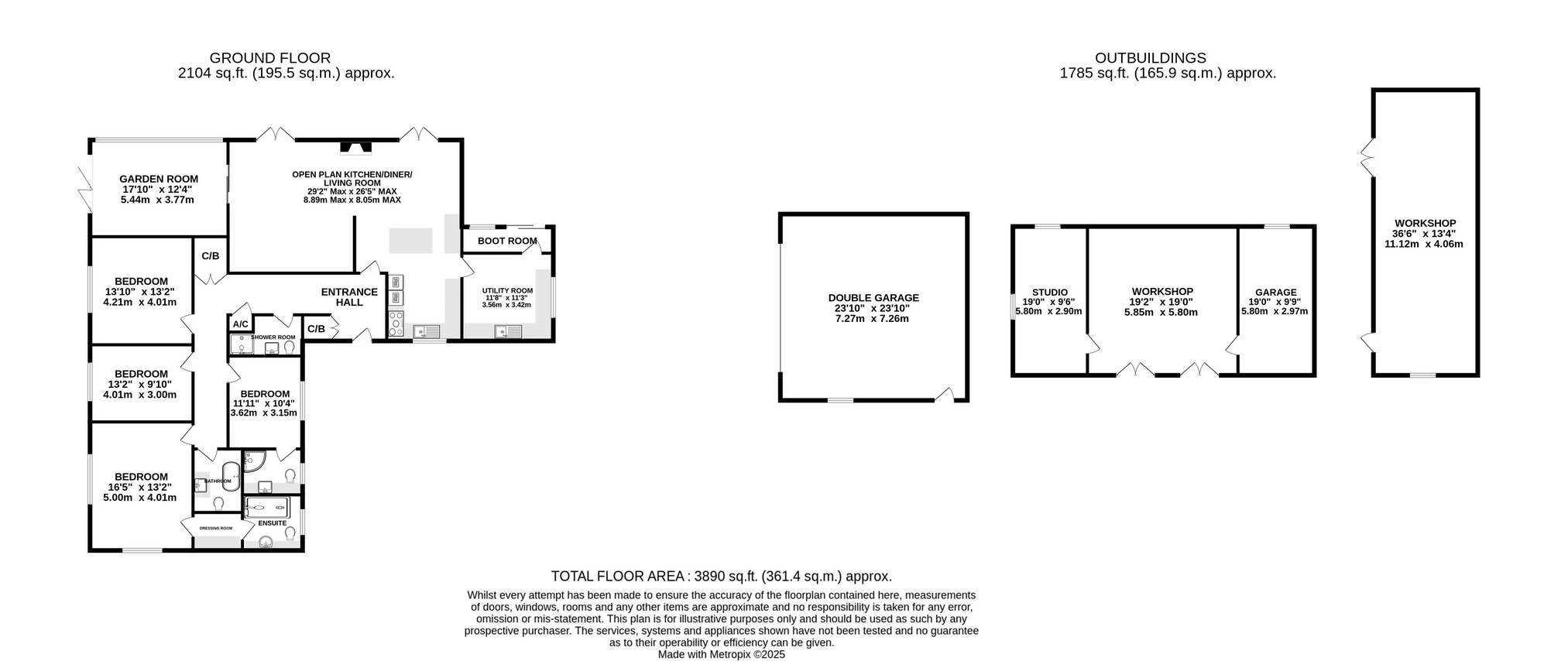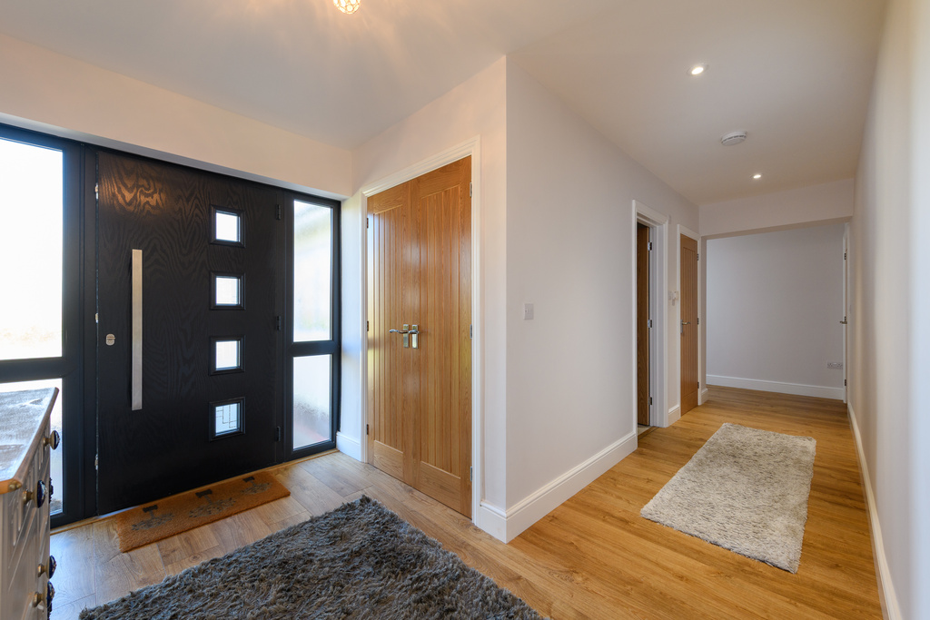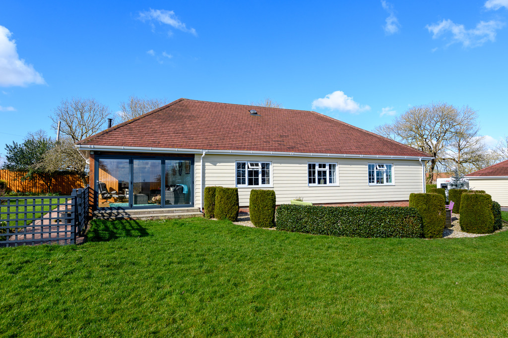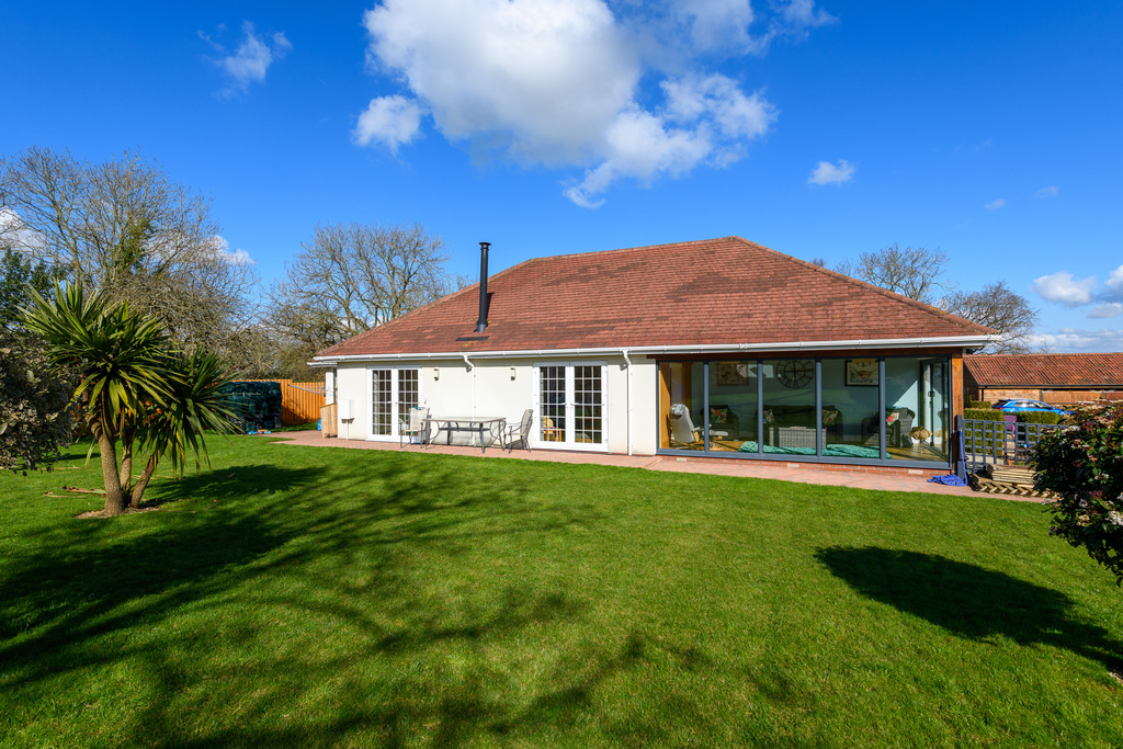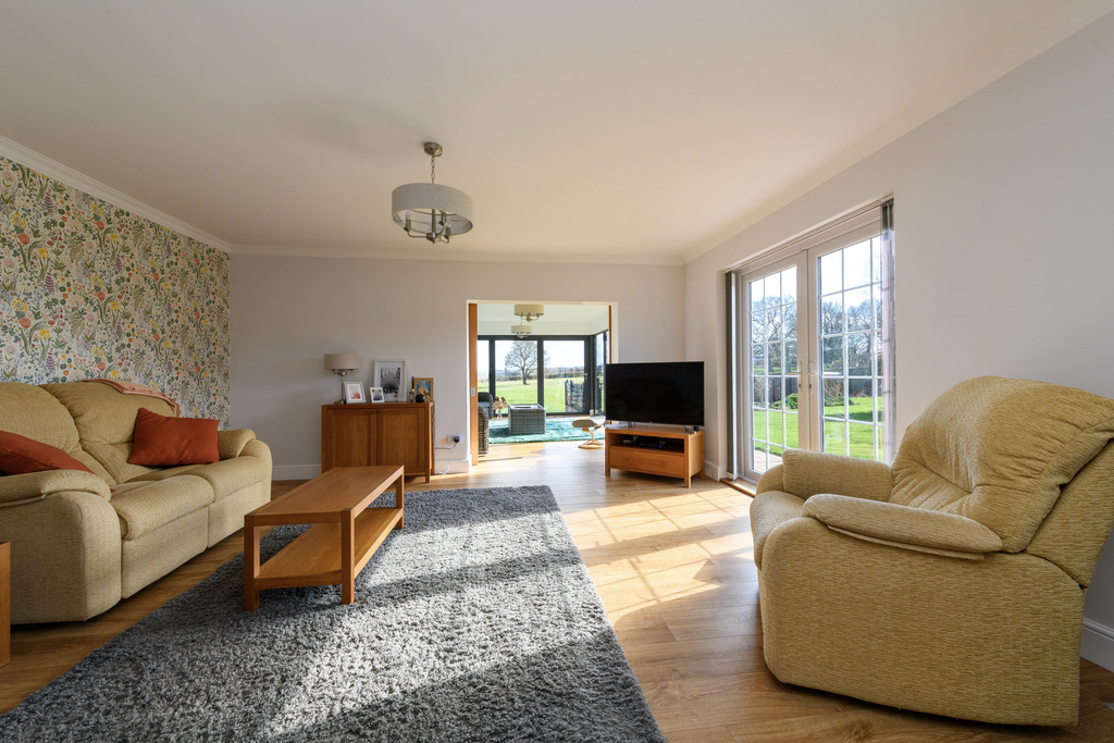 This exceptional four-bedroom detached bungalow, which has been finished to a high standard, boasts a stunning open-plan living area and offers spacious and well-proportioned living accommodation throughout. You are welcomed into a spacious entrance hall that connects seamlessly to various parts of the house. To the right, a well-appointed shower room offers a practical space for families and guests. Moving further inside, a hallway to the left leads to the bedroom wing, where four generously sized bedrooms are situated boasting fantastic views over the countryside. Located towards the end of the hallway is a fantastic family bathroom, beautifully designed with an elegant bathtub, WC, wash basin, and a stylish vanity unit. Finally, the master bedroom stands as the most expansive, complete with a dressing room and a private ensuite bathroom, adding a touch of luxury. Returning to the entrance hall and moving forward, you enter the heart of the home—the open-plan kitchen, dining, and living area. Natural light floods the space, enhancing its inviting ambiance. The garden room, opening to the living area through sliding barn-style doors, is a cosy and inviting sunlit space framed by bifold doors and expansive windows. It serves as a perfect retreat, offering stunning views of the garden. To the right of the kitchen, a door leads through to the utility room, which provides additional storage and plumbing for laundry facilities ensuring practicality and convenience. From here you have access to the boot room, which in turn gives direct access out to the garden. The bungalow features a private low maintenance garden, mainly laid to lawn with well stocked flower-filled borders and established fruit trees with a further area of paddock with mature fruit trees. Additional 3 acre paddock available upon request. Extensive double garage and ample parking with gated access. Available now. Deposit equivalent to 5 weeks' rent.