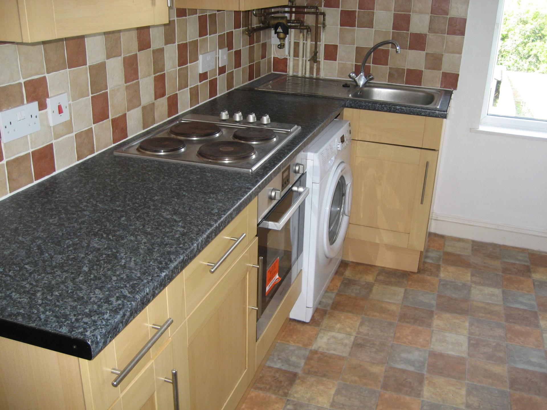Three bedroom flat in Murray Avenue, Bromley BR1 comprising of kitchen with free standing appliances, oven, fridge/freez...