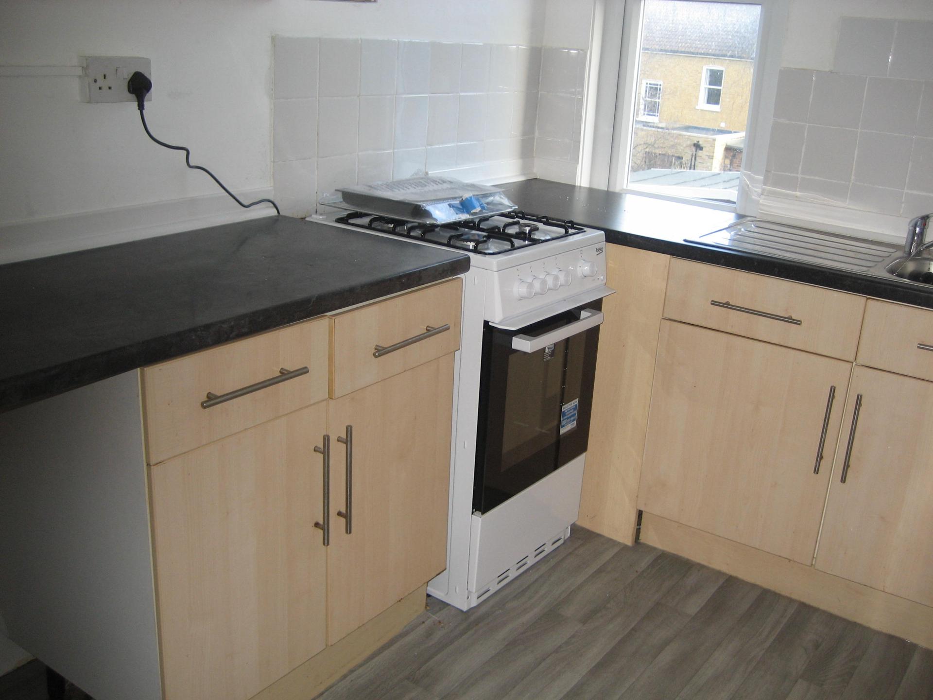 Three bedroom flat in Murray Avenue, Bromley BR1 comprising of kitchen with free standing appliances, oven, fridge/freez...