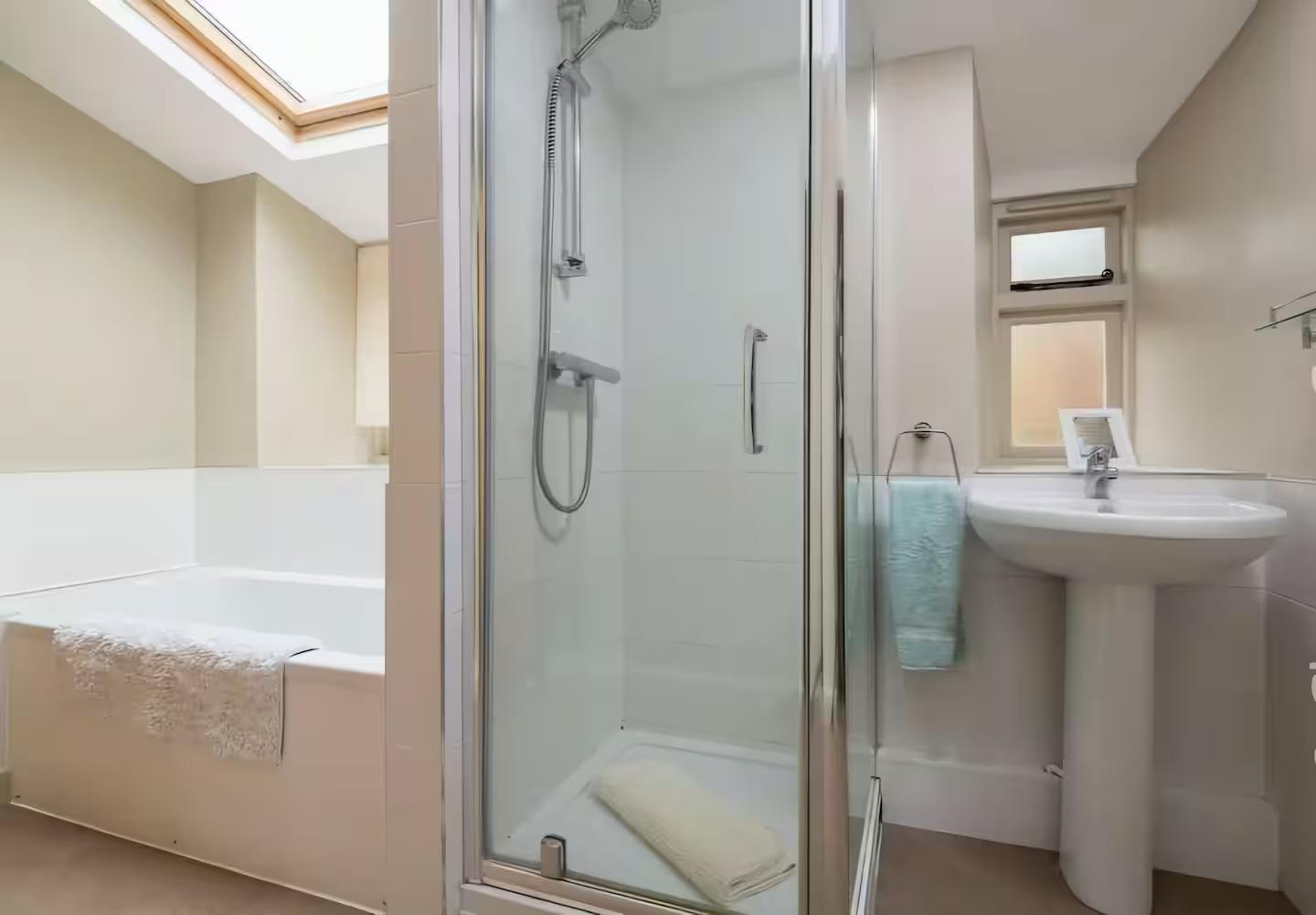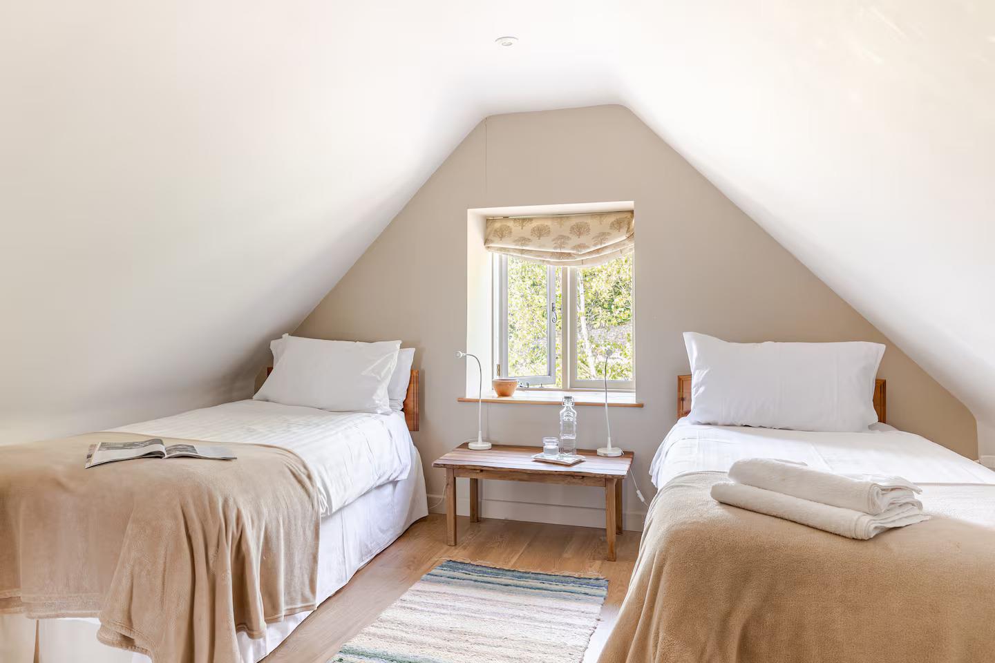 Upstairs, the cottage offers two bedrooms. The master bedroom features a double bed, and a built-in wardrobe, all complemented by far-reaching rural views. The second bedroom is cosy and restful, with two single beds, and a wardrobe. The family bathroom is flooded with natural light and includes a bath with handheld shower, walk-in shower, toilet, wash basin, and heated towel rail, with an additional cloakroom for convenience.