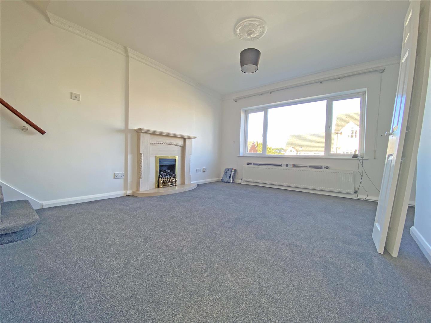 Double glazed window to front, stairs to second floor, radiator, gas fire.