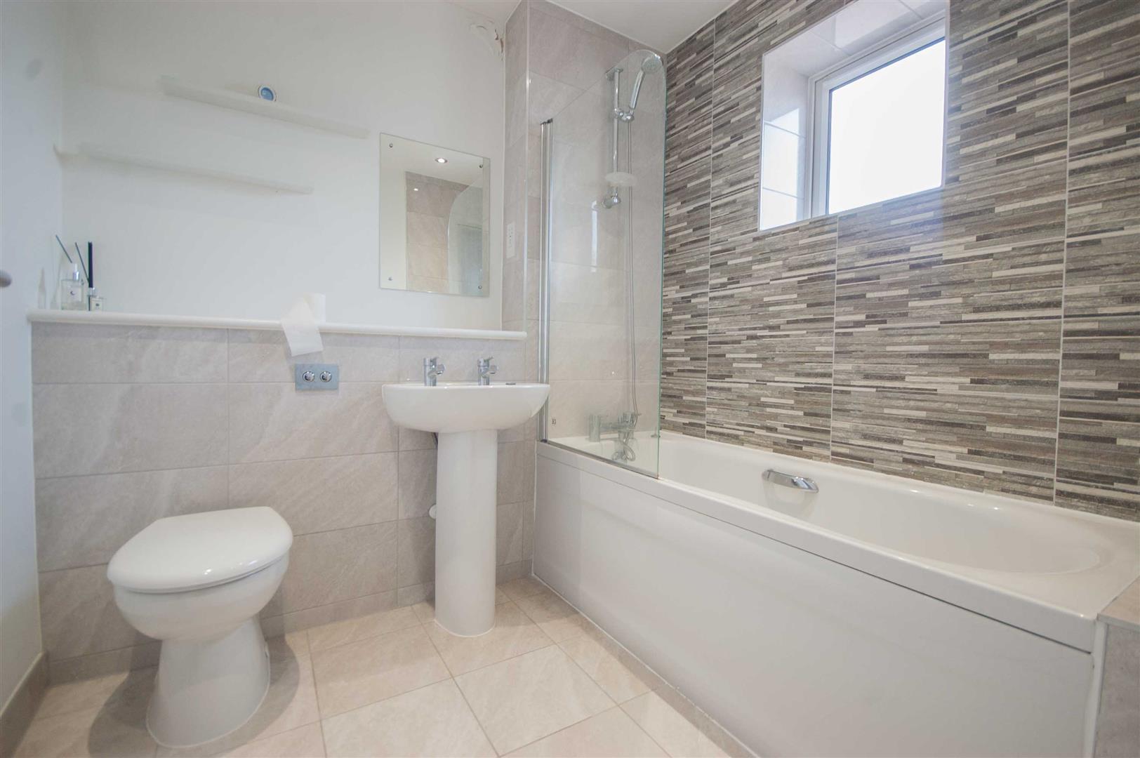 Bathroom: - 2.16m x 2.06m (7'1" x 6'9") - Obscure double glazed window to rear, panel bath with shower mixer tap, pedestal hand wash basin, low level W/C, part tiled walls, tiled flooring.