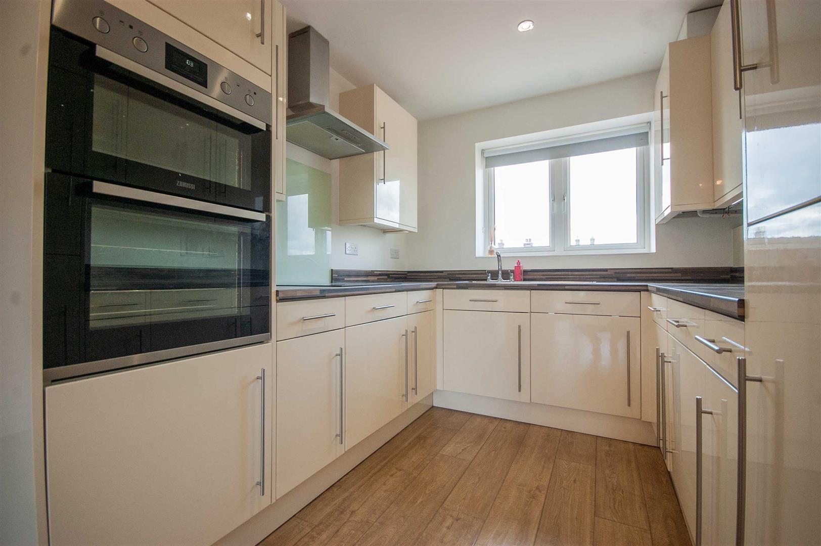 Kitchen: - Rang of wall and base units, rolled edge work surfaces with stainless steel sink inset, integrated double oven, induction hob with glass splashback and extractor over, dishwasher, washer dryer, fridge freezer.