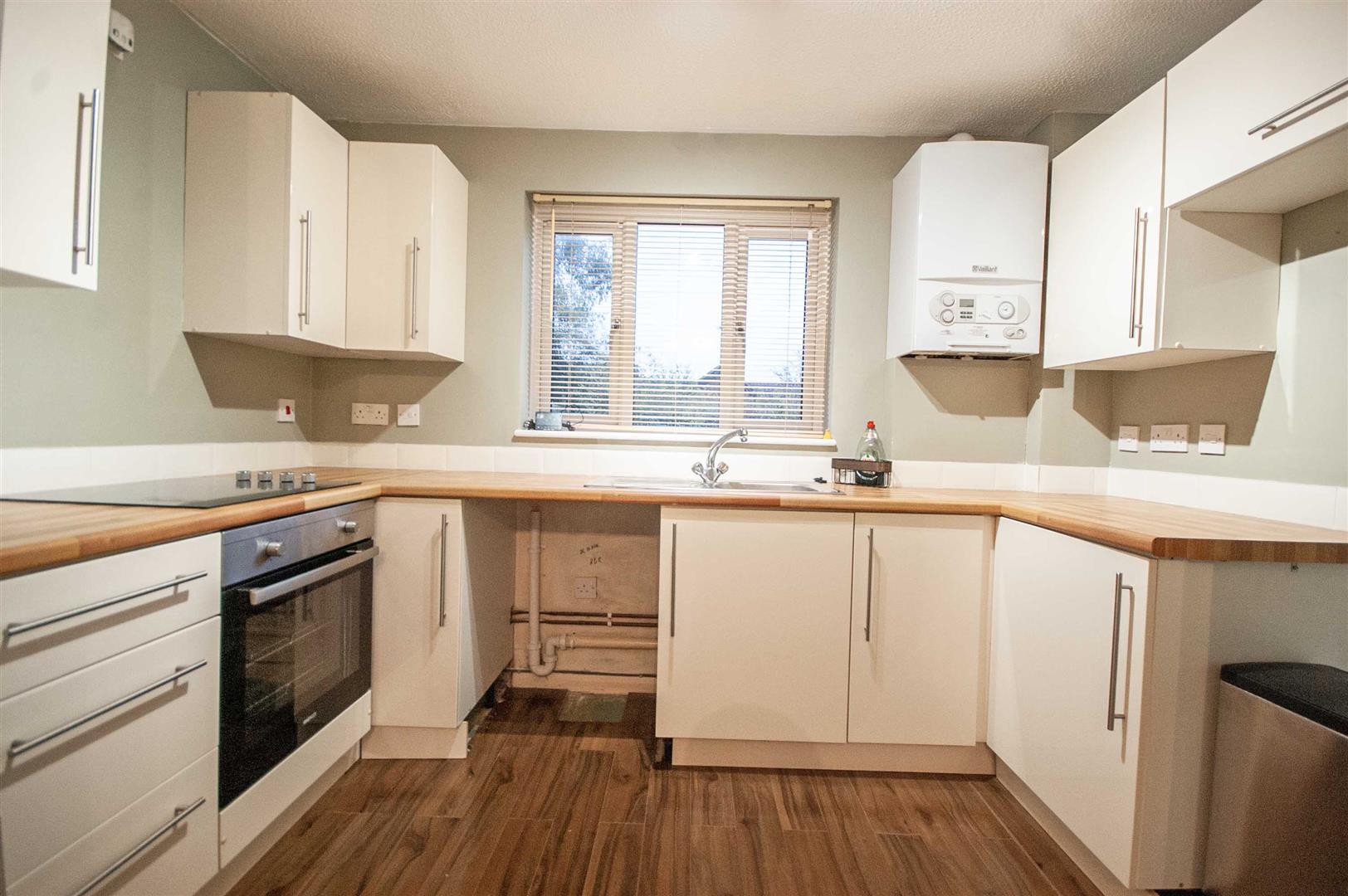 Kitchen: - Range of wall and base units, rolled edge work surfaces with stainless steel sink inset, integrated low level oven, boiler to wall.