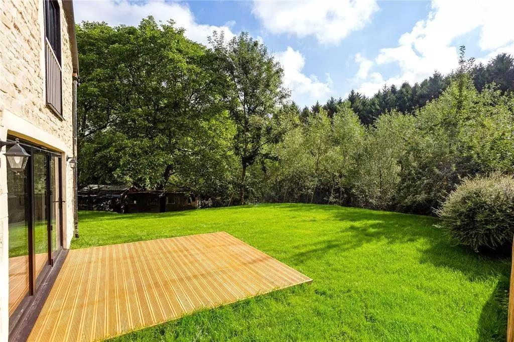 Set within private woodlands, the garden offers a tranquil environment with picturesque views. A decked entertainment area is perfect for outdoor dining and enjoying the natural surroundings.