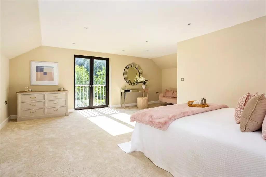 The property offers a large principal bedroom with a Juliet balcony overlooking the garden, built-in wardrobes, and an en-suite shower room. There are three additional double bedrooms and a family bathroom with a shower over the bath, accommodating family and guests comfortably.