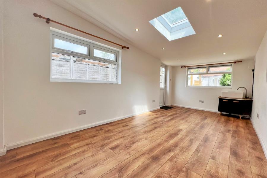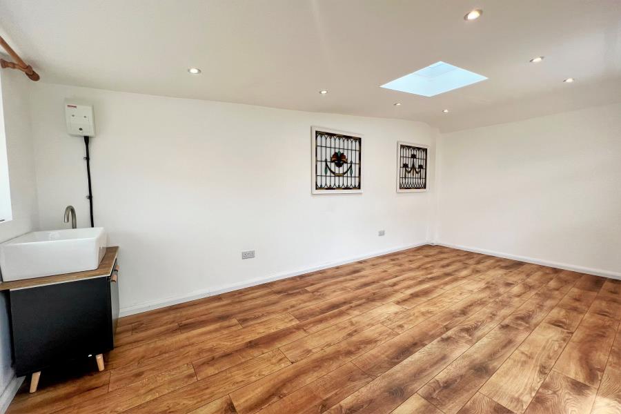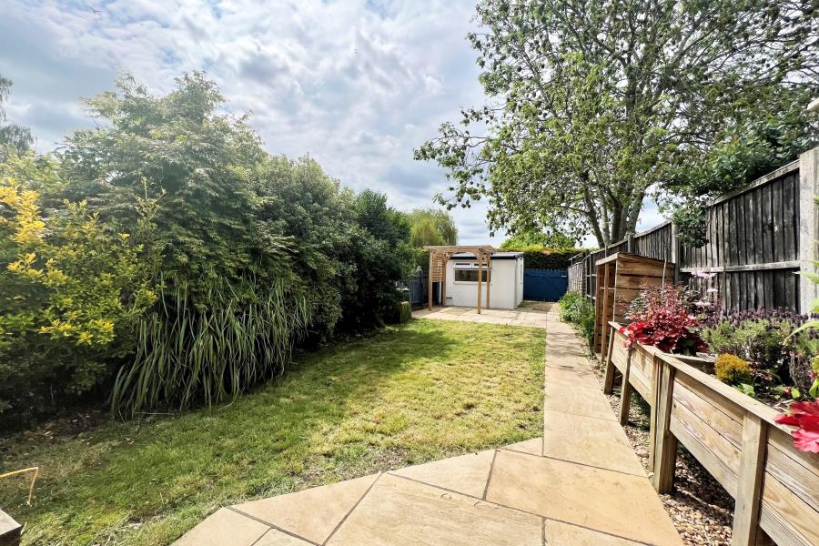 The property offers a well-designed layout that includes an entrance porch, providing convenient space for coats and shoes. The living room features a captivating log burner, adding a cozy and charming atmosphere. The shaker style kitchen adds a touch of elegance, and the modern three-piece bathroom ensures comfort and functionality. Two double bedrooms offer ample space, while the dual aspect dining room fills the space with natural light. Externally, the property boasts attractive gardens both at the front and rear. The front garden features a combination of a lush lawn and a pathway made of slabs and shingle, creating a welcoming entrance. The sunny rear garden enjoys a westerly aspect and offers a delightful combination of decking, lawn, and patio areas, providing an ideal space for relaxation and outdoor activities. Parking is available at the rear of the garden, offering convenience for residents. Additionally, there is a spacious outbuilding that currently serves as a home office/bedroom, providing versatility and extra usable space. Overall, this property offers a well-maintained interior, appealing outdoor spaces, and practical features that contribute to a comfortable and enjoyable living experience.