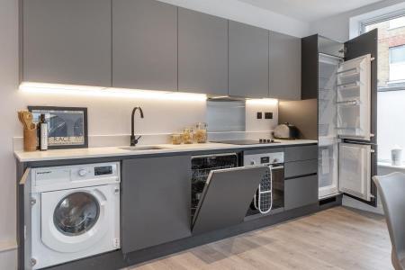 A modern studio apartment in the town centre, just 0.3 miles from Woking station, featuring a fitted kitchen and a Julie...