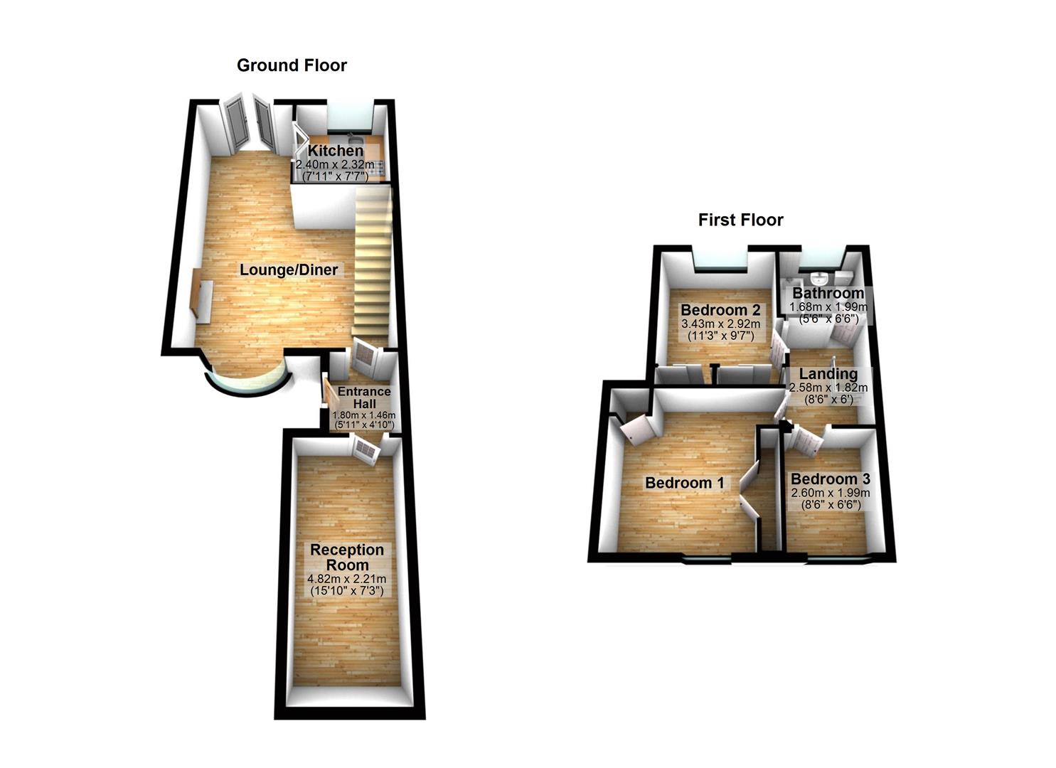 A Three Bedroom Victorian Terraced House with the third bedroom leading off from the main bedroom, located within walkin...