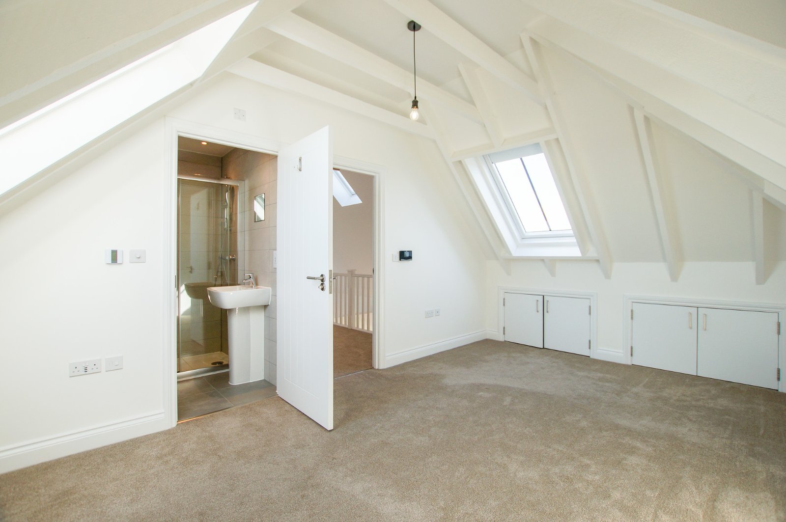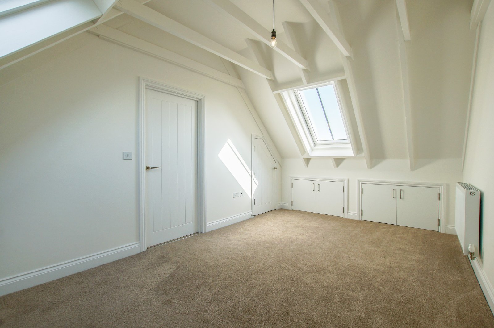 Moving up to the first floor you have the master bedroom with en-suite and storage cupboards within the eaves, family bathroom off the landing, then the second bedroom again with storage. The property is fitted with an air source heat pump central heating system and has a shared cesspit with the neighbouring barn to which costs for emptying would be split 50/50 when required. Regretfully no pets.