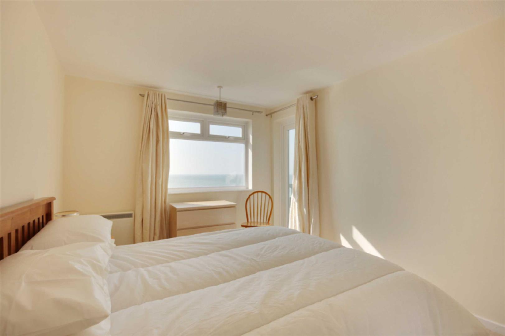 Bedroom One - Bedroom One: Sea view. King size double bed with duvet and four polyester/cotton pillows.