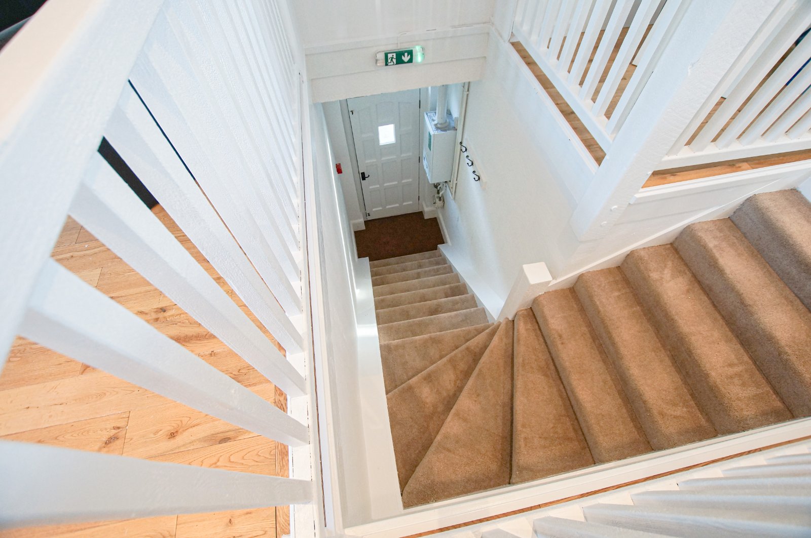 With its own private entrance, the apartment welcomes you into a compact hallway that leads up to a light-filled landing. This open-plan space encompasses a generous lounge and dining area, perfectly arranged for relaxed living and entertaining.