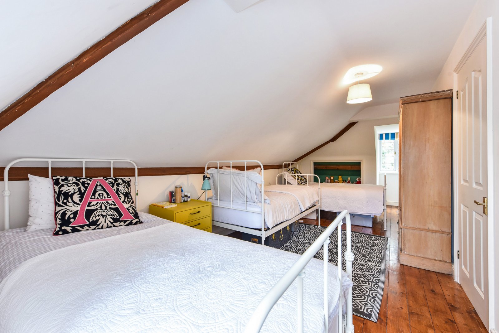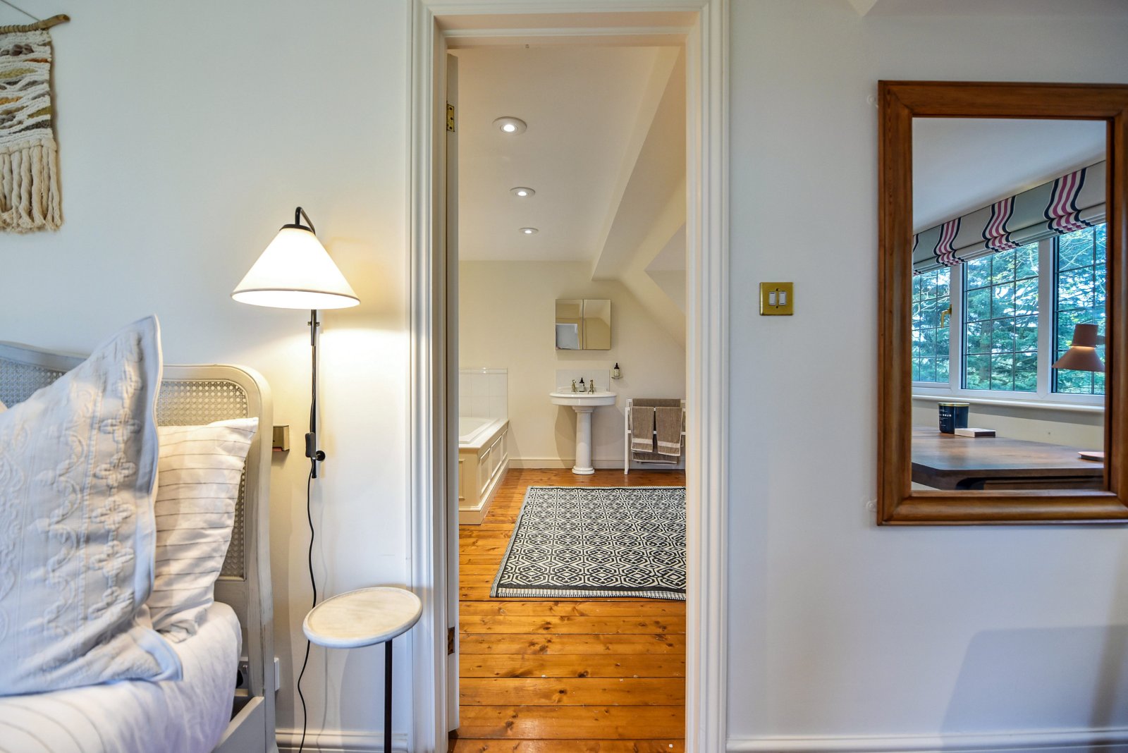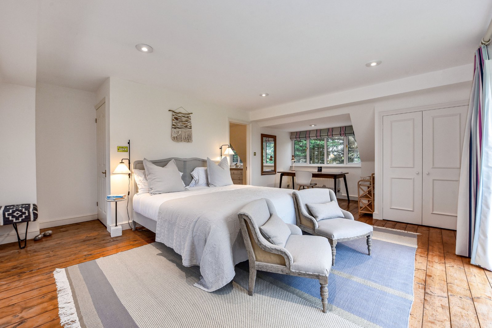 On the first floor an impressive principal bedroom suite looks south, with a Juliette balcony making the most of the views over the gardens to neighbouring fields.
