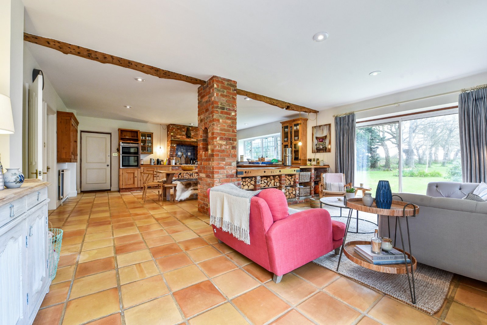 A traditional farmhouse style kitchen has attractive ornamental brickwork and a good range of integrated appliances. The sitting area has two sets of doors opening south and west onto the terrace and garden. A study and snug provide additional reception rooms away from the main living areas, ideal for relaxing or working from home.