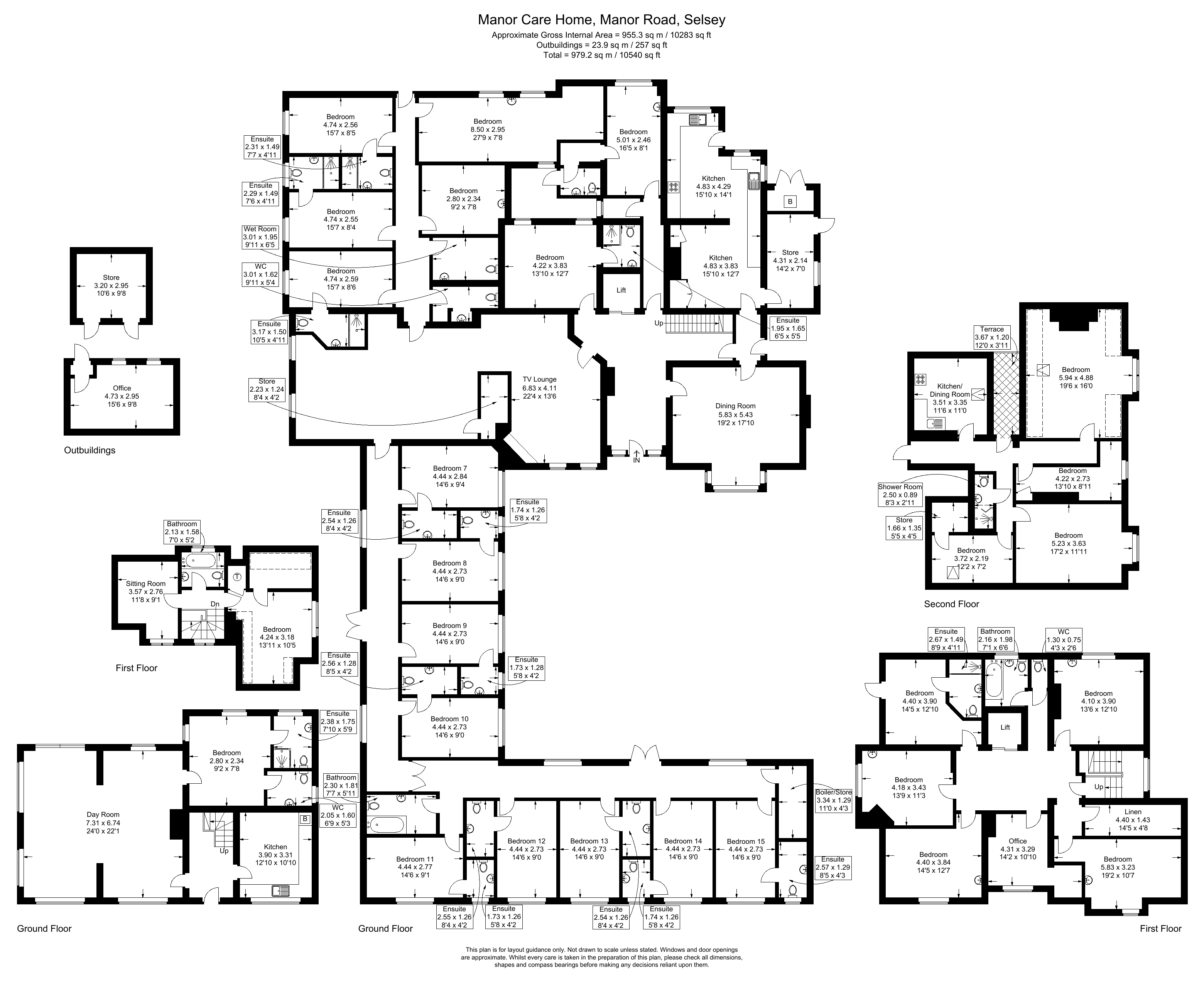 A former Care Home (and currently still arranged as such) with outbuildings.