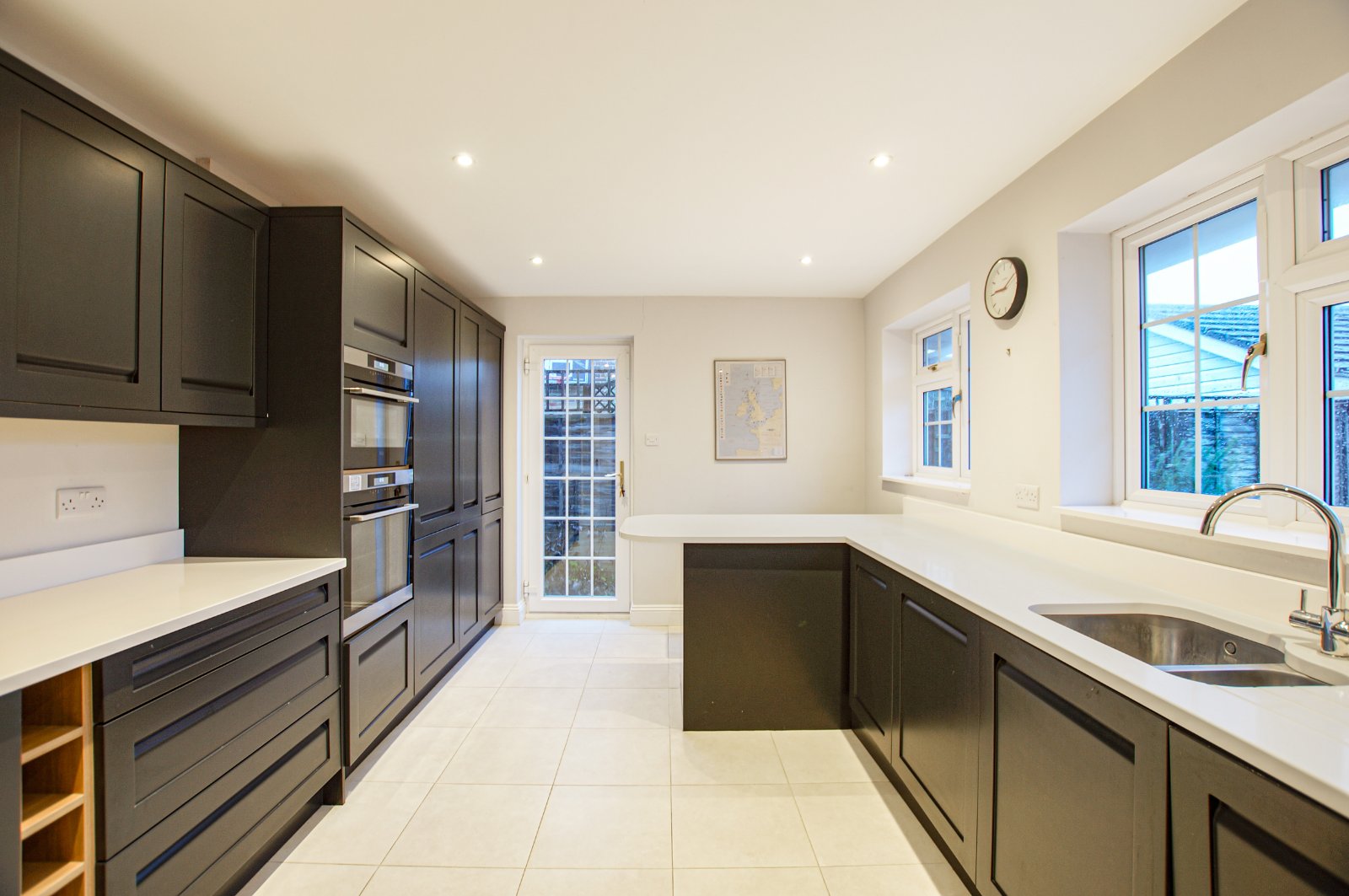At the heart of the home lies a superb double-aspect living and dining room, a wonderfully light and welcoming space that enjoys views over the paved garden, perfect for both relaxed family living and entertaining. The modern fitted kitchen has been thoughtfully designed to maximise both storage and functionality, complementing the overall flow of the home.