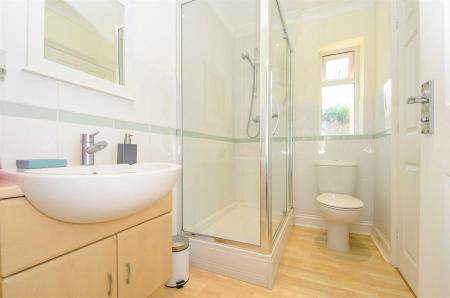 Cloakroom/Shower - 22'3" x 10'3" - With access from either Bedroom Two or the Hall. Half tiled with fully tiled double glass, shower cubicle. Semi-recessed wash basin with cupboards below. Low level WC with recessed cistern, chrome towel rail/radiator, shaver point.