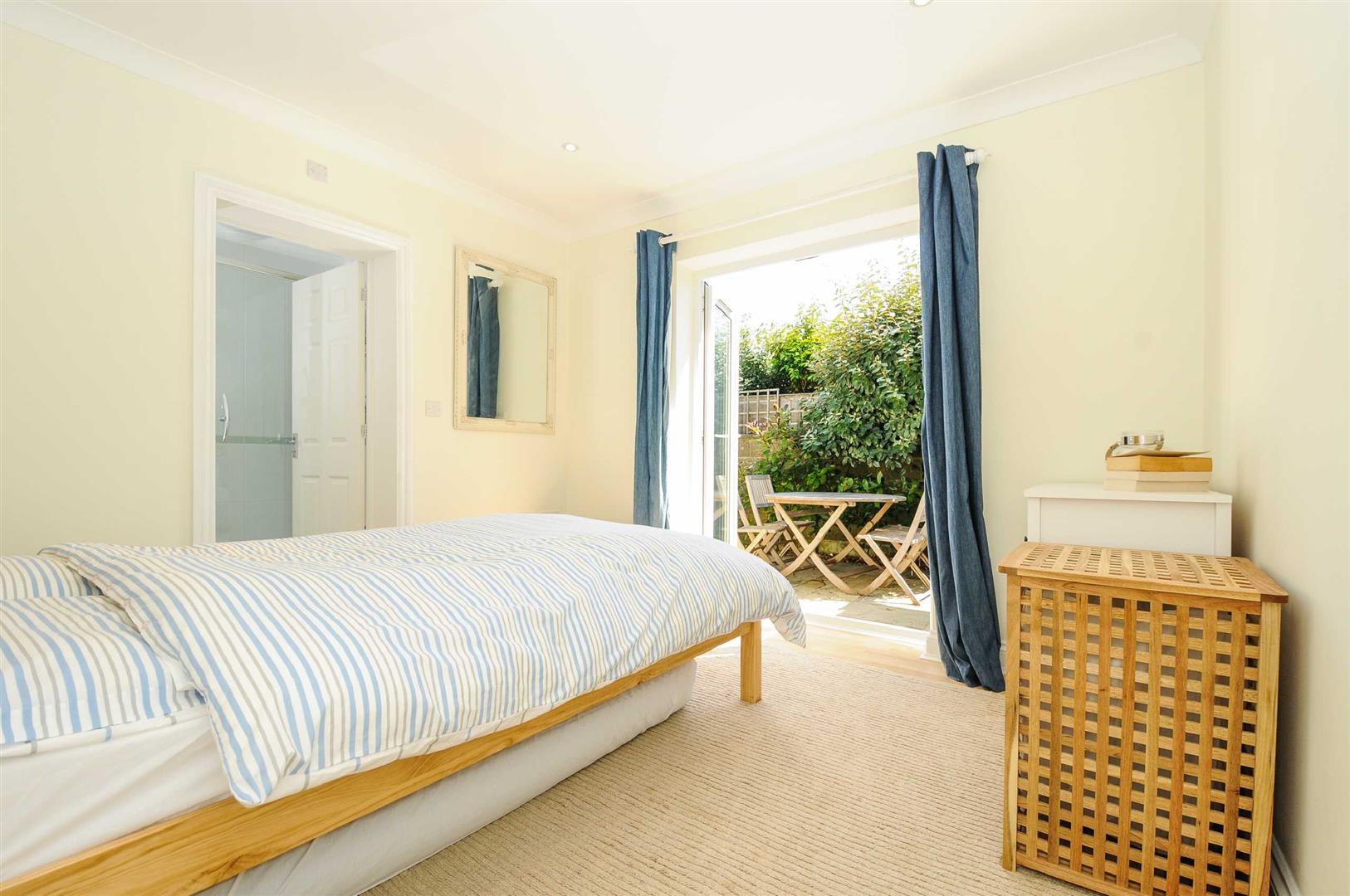 Bedroom 2 - 10'11" x 9'11" - Full height double glazed doors to rear garden. Radiator. Door into cloak/shower room.